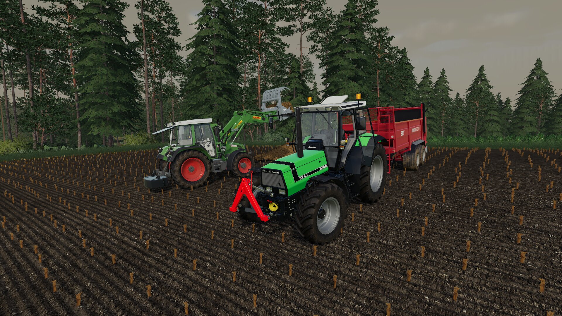 Deutz Fahr Agrostar 6.31 und Fendt Farmer 307 Ci am Miststreuen.