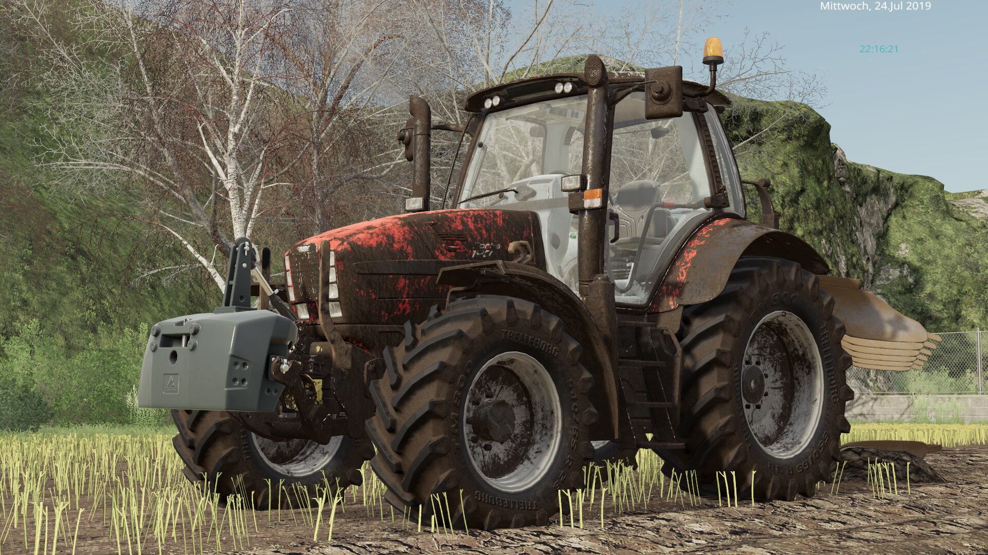 Ich bin ehrlich: Hab ich auch nicht verstanden. Gestellt ist das nicht. Traktor und Pflug wurden dreckig, das Gewicht irgendwie nicht.