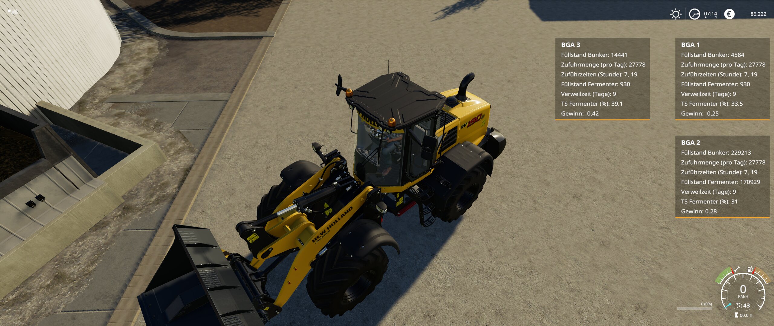 DIe 12% TS-Gehalt können durch das direkte Zuführen von Gülle erreicht werden. Um die Anlage mit anderen Einstellungen zu betreiben, können derzeit nach einmaligem Speichern einige Einstellungen im Savegame-Ordner vorgenommen werden (items.xml).