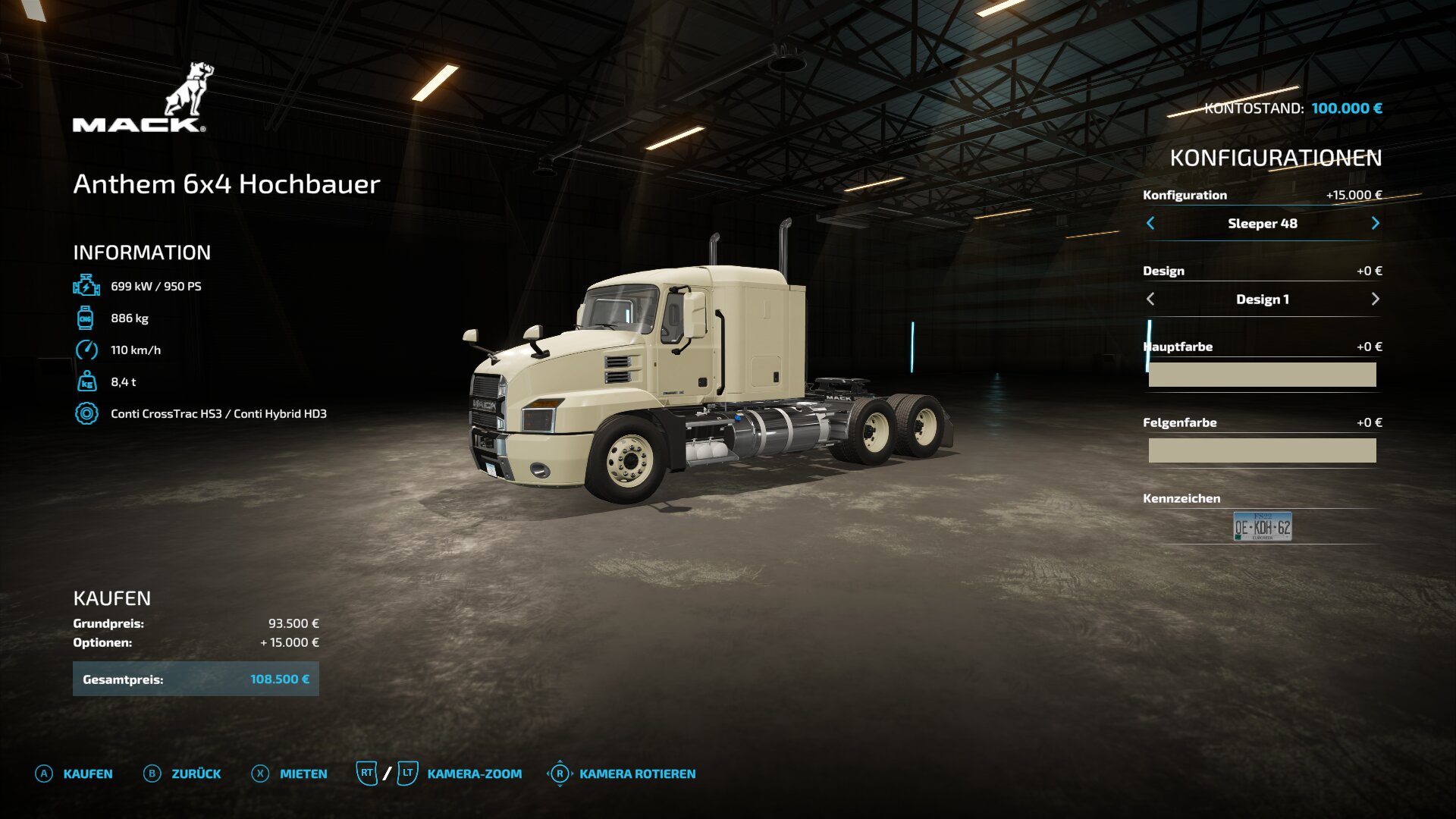 Mack - Farbwahl, Drehzahl, Beschleunigung und Bremskraft angepasst.