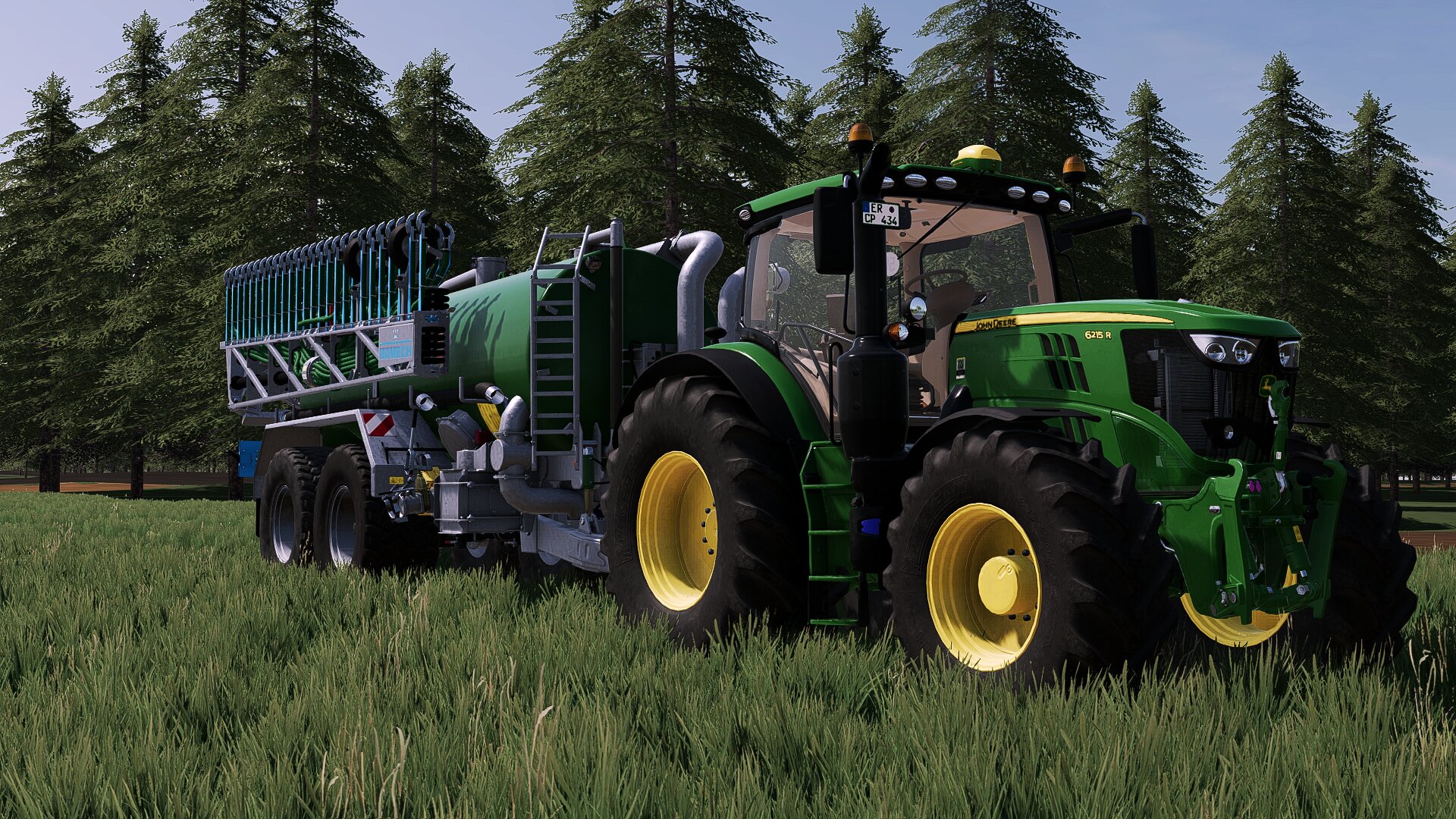 Die Ersten Gärreste auf die Wiesen ausbringen in Brandenburg mit einem John Deere 6215R und einem Kotte Garant PT 16000 mit einem Bomech Multi Profi 21/15.