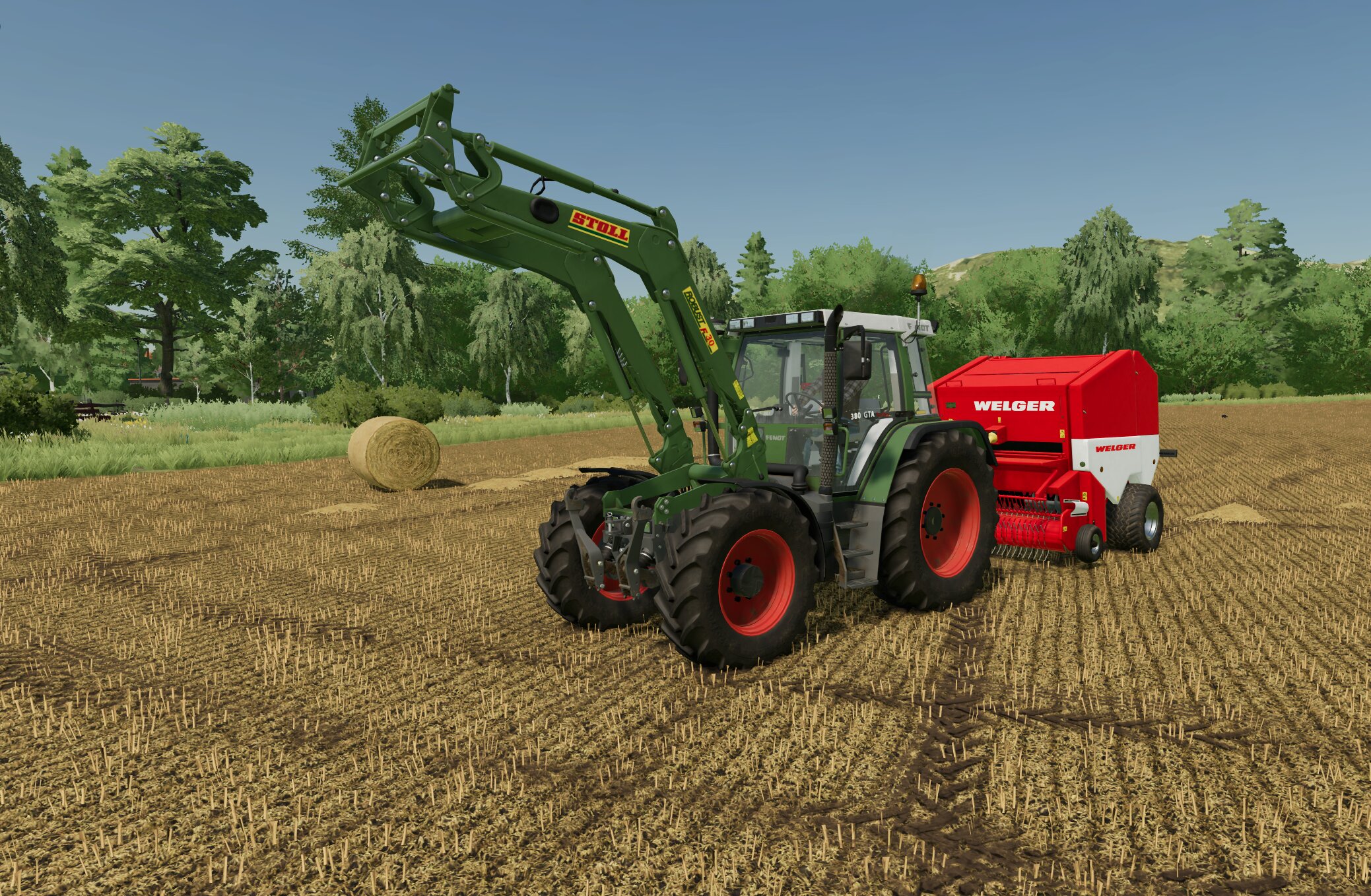 Fendt GTA 380 mit der Welger Presse auf der Frühling unterwegs..