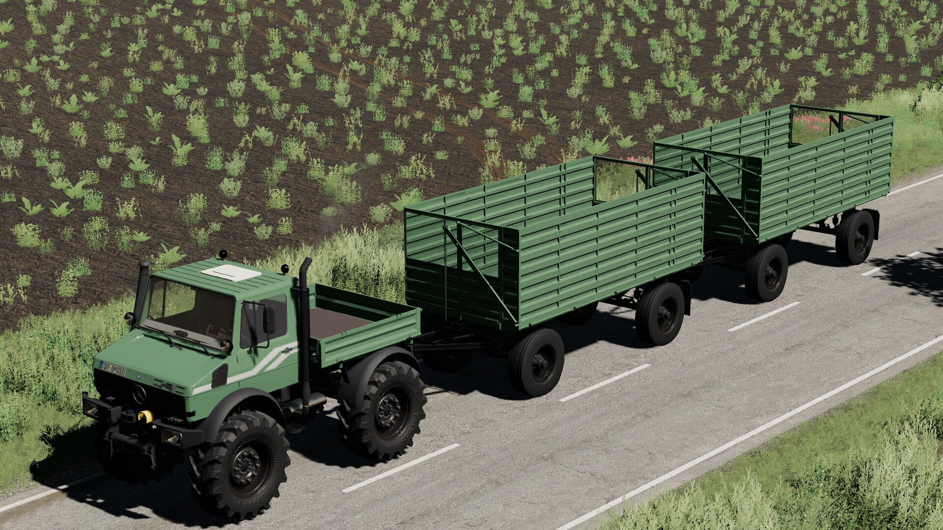 Hier zusehen mein U2100 mit HW80 Anhänger auf dem Weg zum Feld
