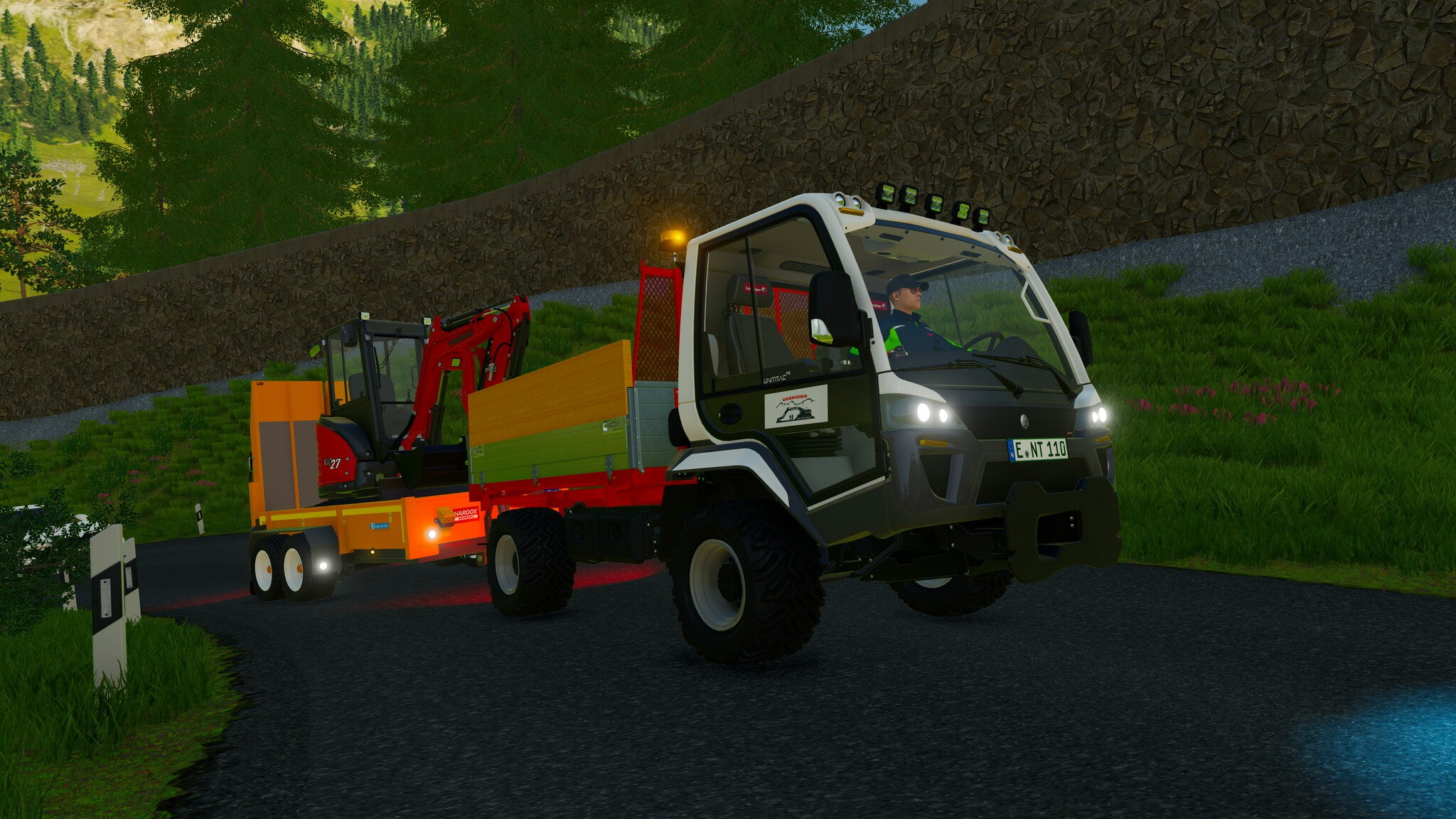 Bagger Transport zum nächste kunde mit dem Lindner Unitrac 122 LDrive