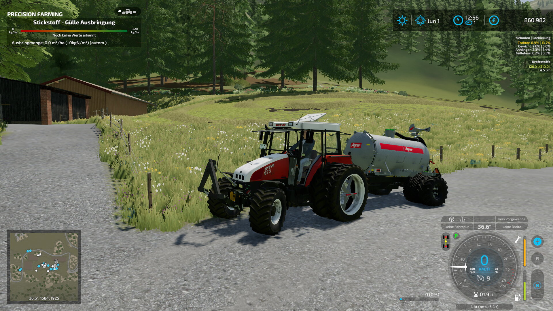 Steyr 975 und Lenktriebachse mit Agrar-Güllefass