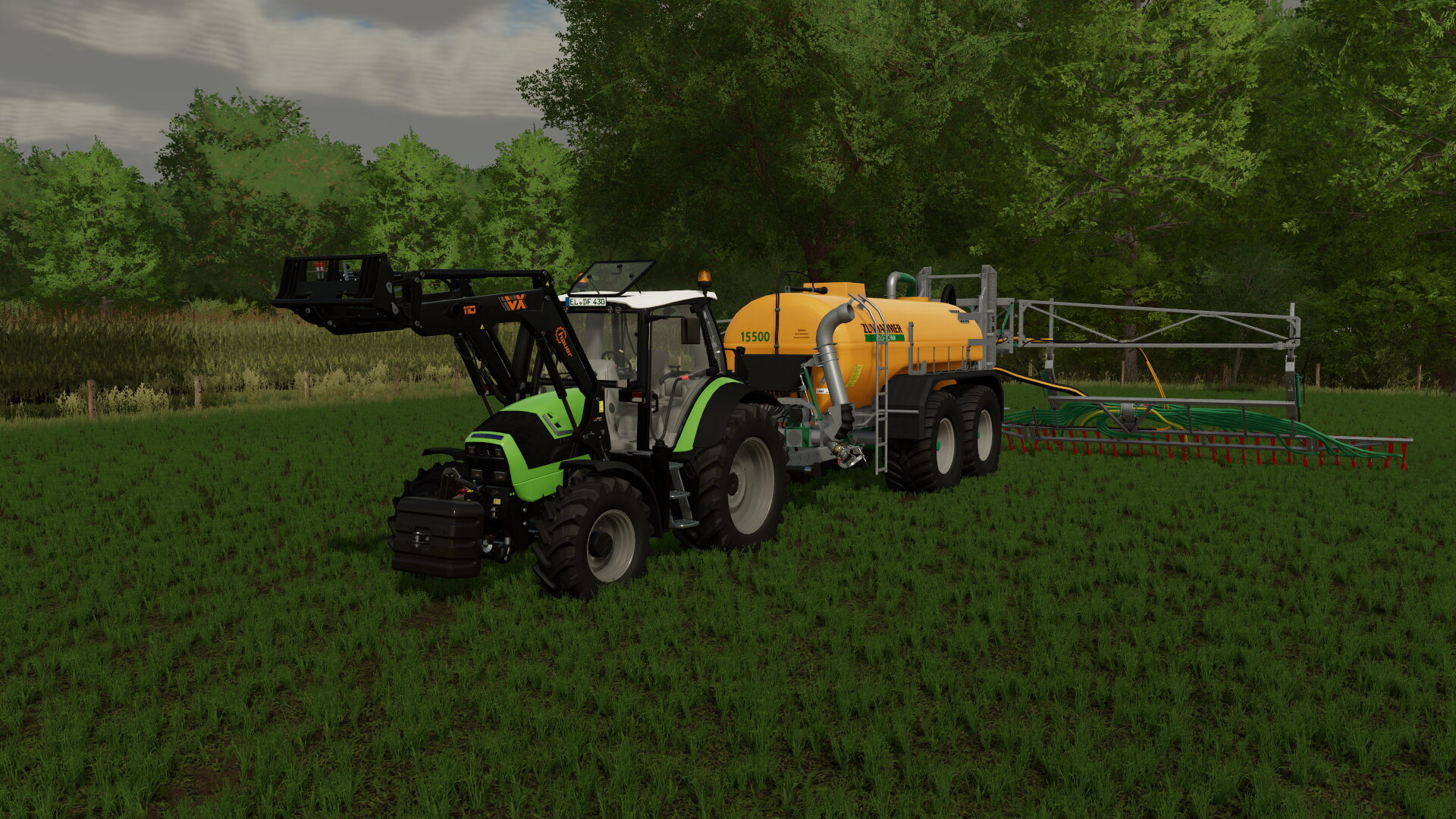 Gülle auf Grünland fahren mit Agrotron TTV 430 und Zunhammer 15,5 Kubik Fass.