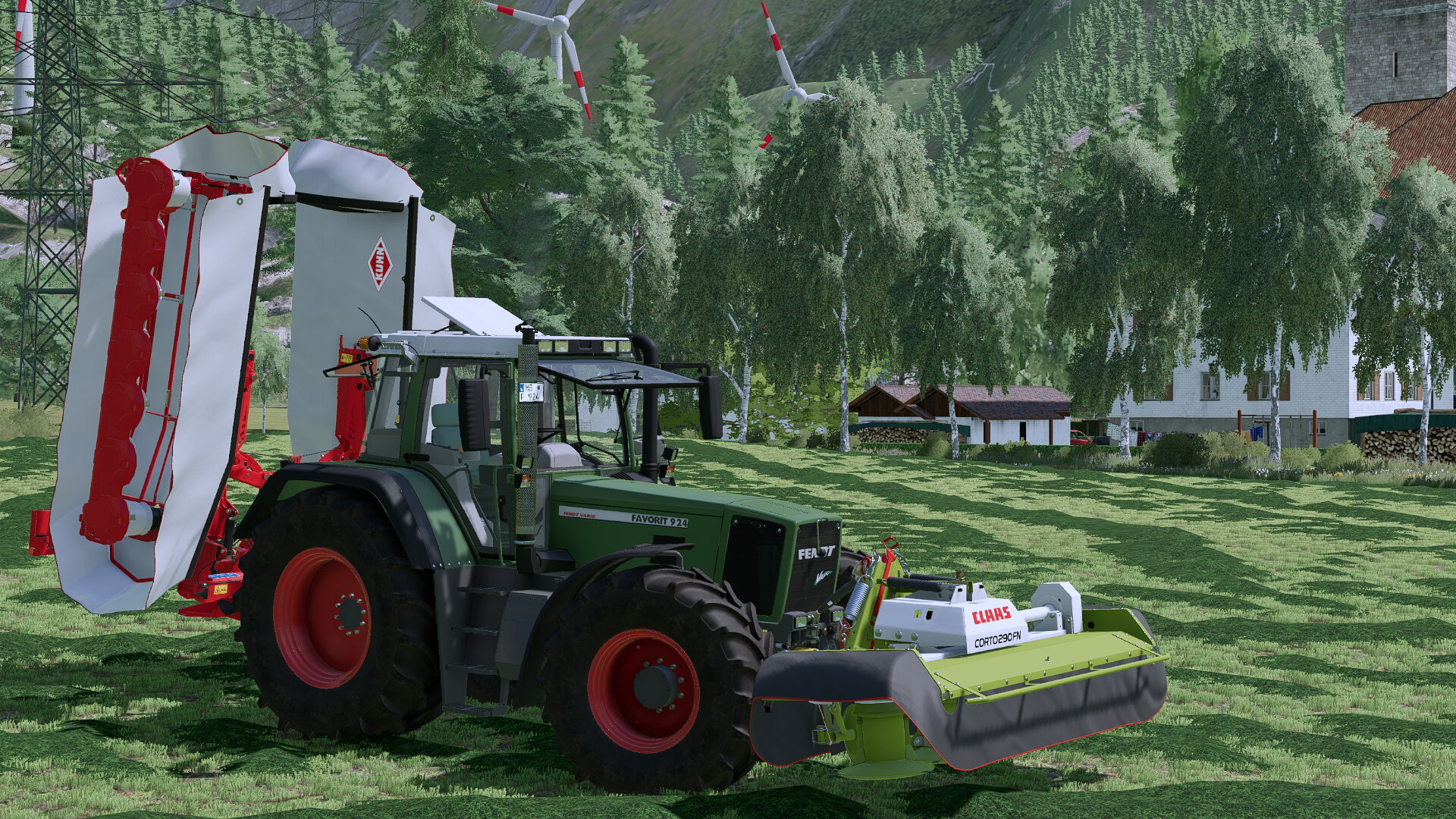 Heute habe ich den 3 Schnitt gemäht mit unseren Fendt 924 und dem alten Claas Frontmähwerk und dem nigelnagelneuen Schmetterling von Kuhn