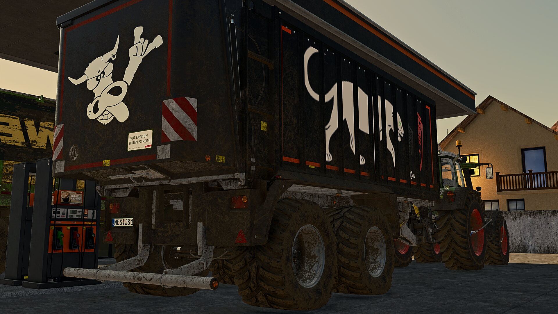Mal eben den 818er und den 1600er Tanken. Der Fliegl Black Panther macht gut was her an der Tankstelle