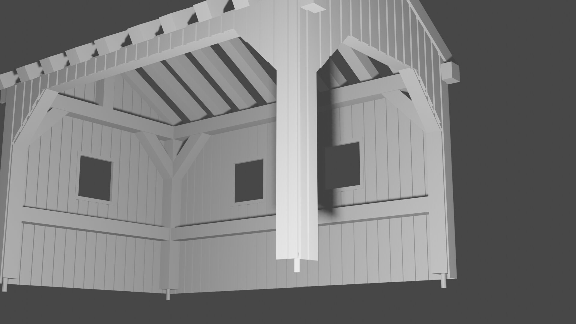 Basiert auf einem realen Gebäude und ist eigentlich ein Freisitz. Das hier ist aber größer als das Original und kann somit als Unterstand verwendet werden. Das Modell ist noch W.I.P.