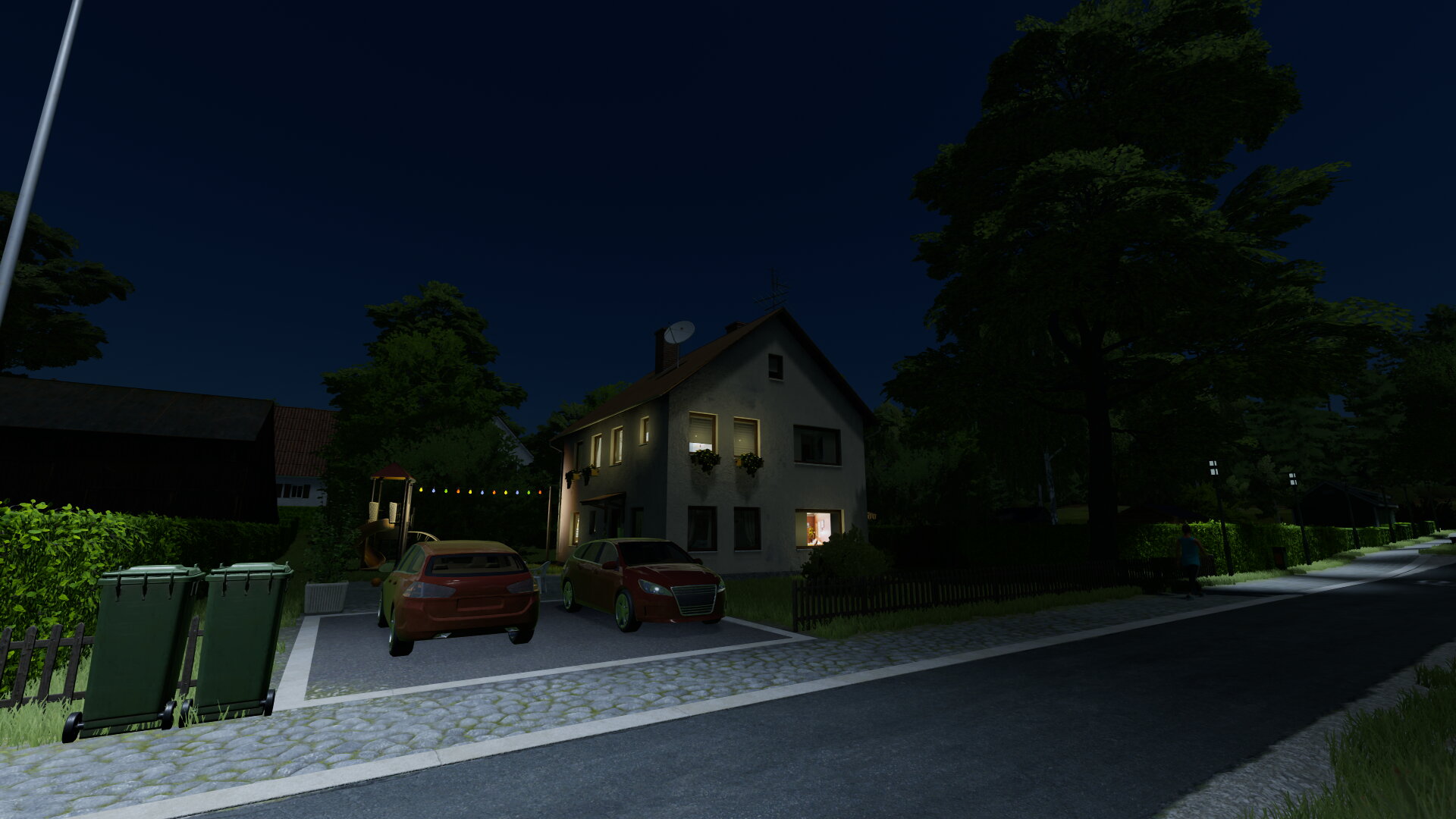 Rebach Umbau bei Nacht mit Licht