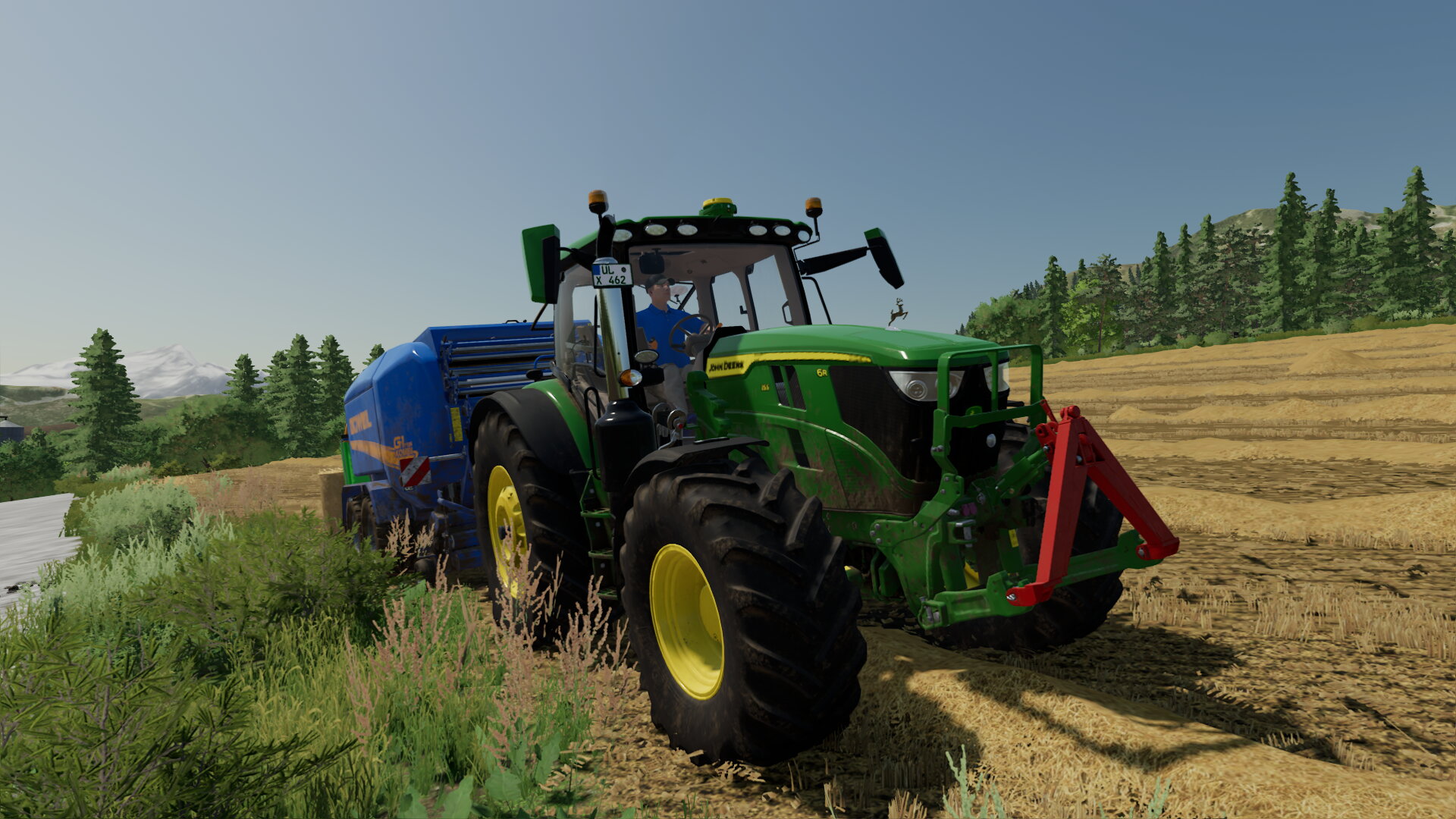 Mit dem 6r 155 und der Göweil Ballenpresse am pressen