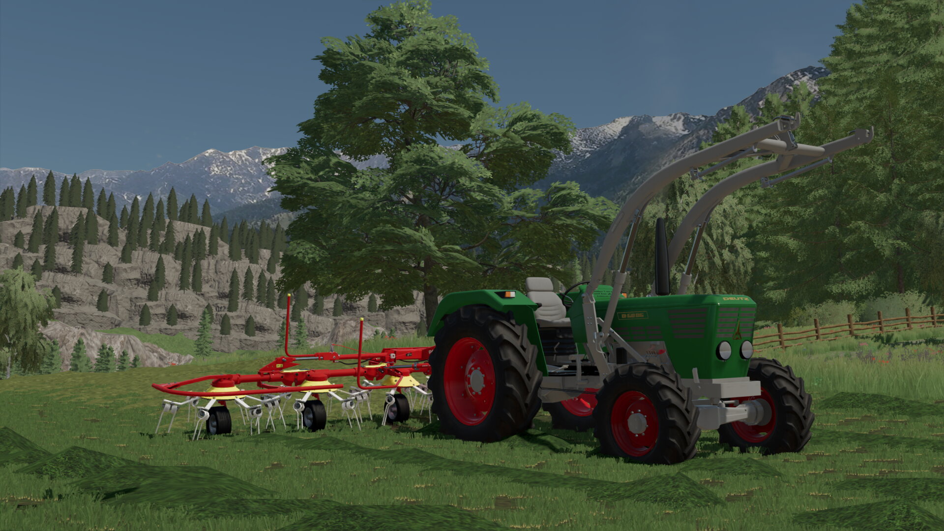 Heu wenden in den Bergen, mit Kölner Kraft