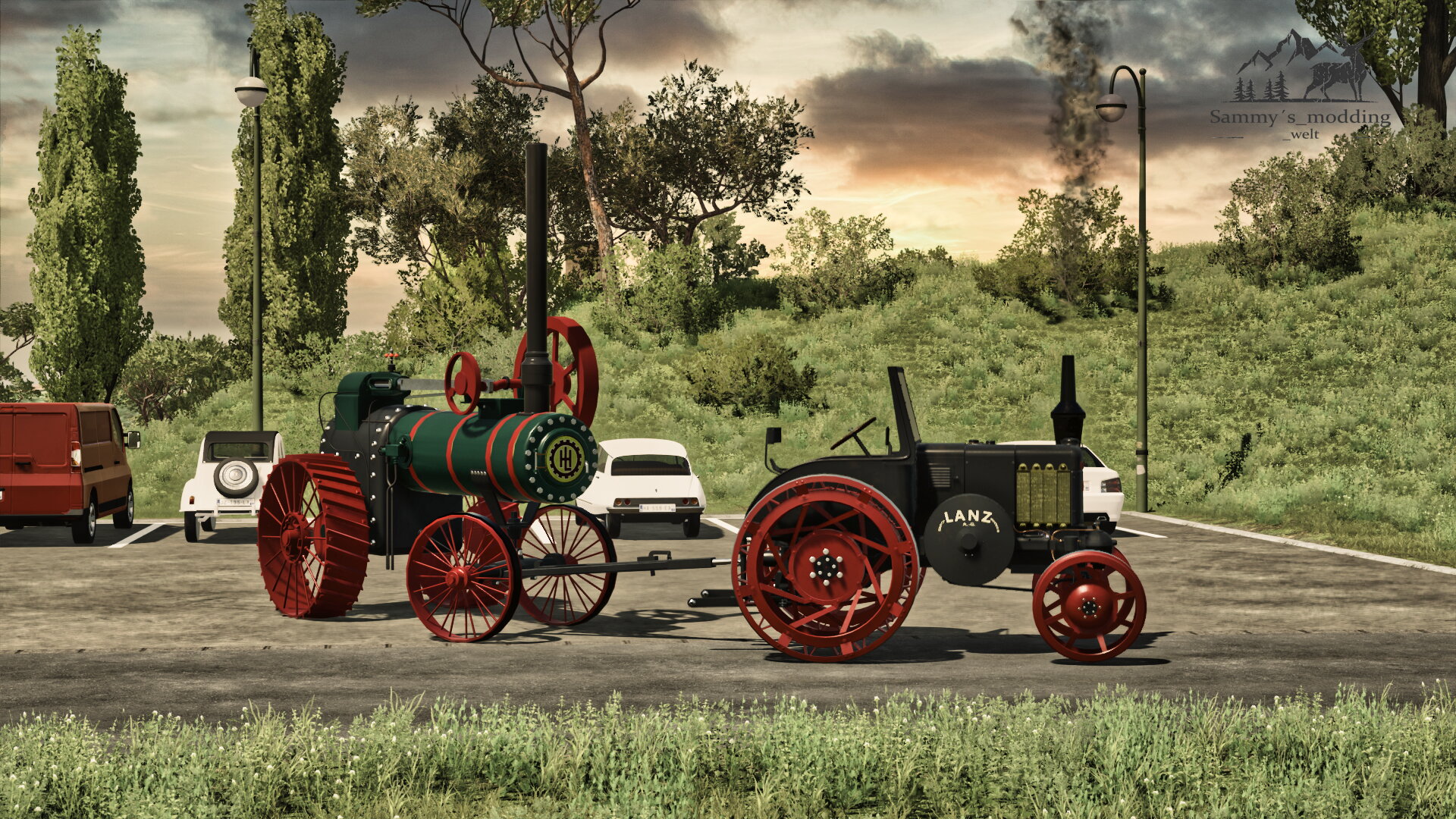 jetzt wird die Alte Dampfmaschine von einem Lanz abgeholt
