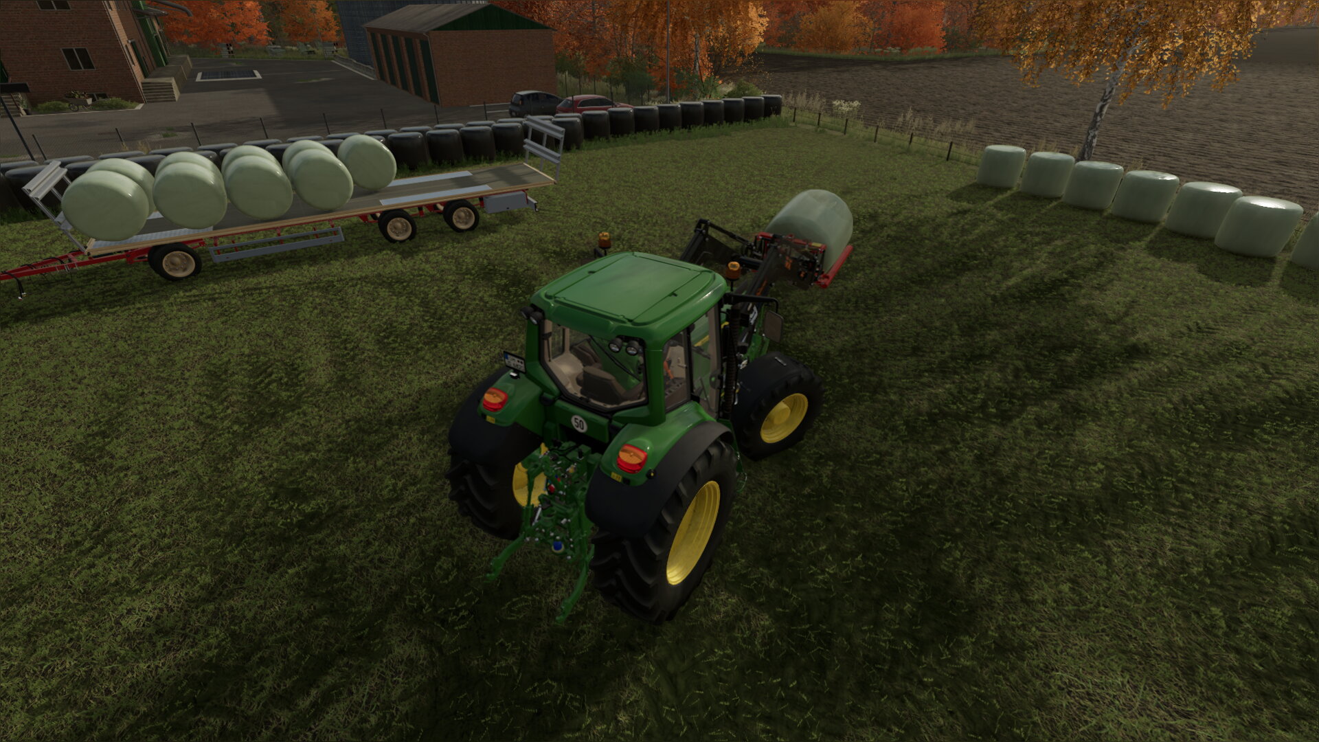 Da der Hof wenig Platz bietet, werden die Ballen auf derselben Wiese gelagert wie die Maisballen.