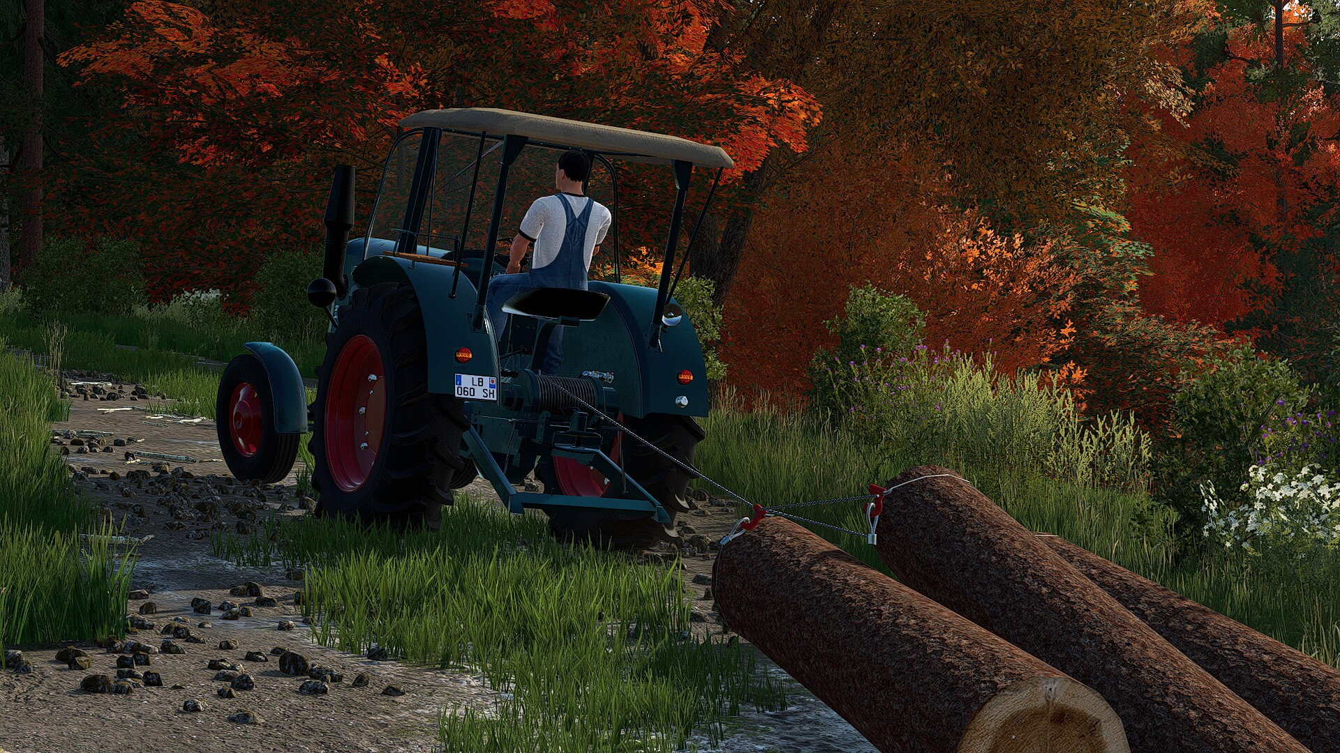 Großer Halbdiesel bei Holzarbeiten