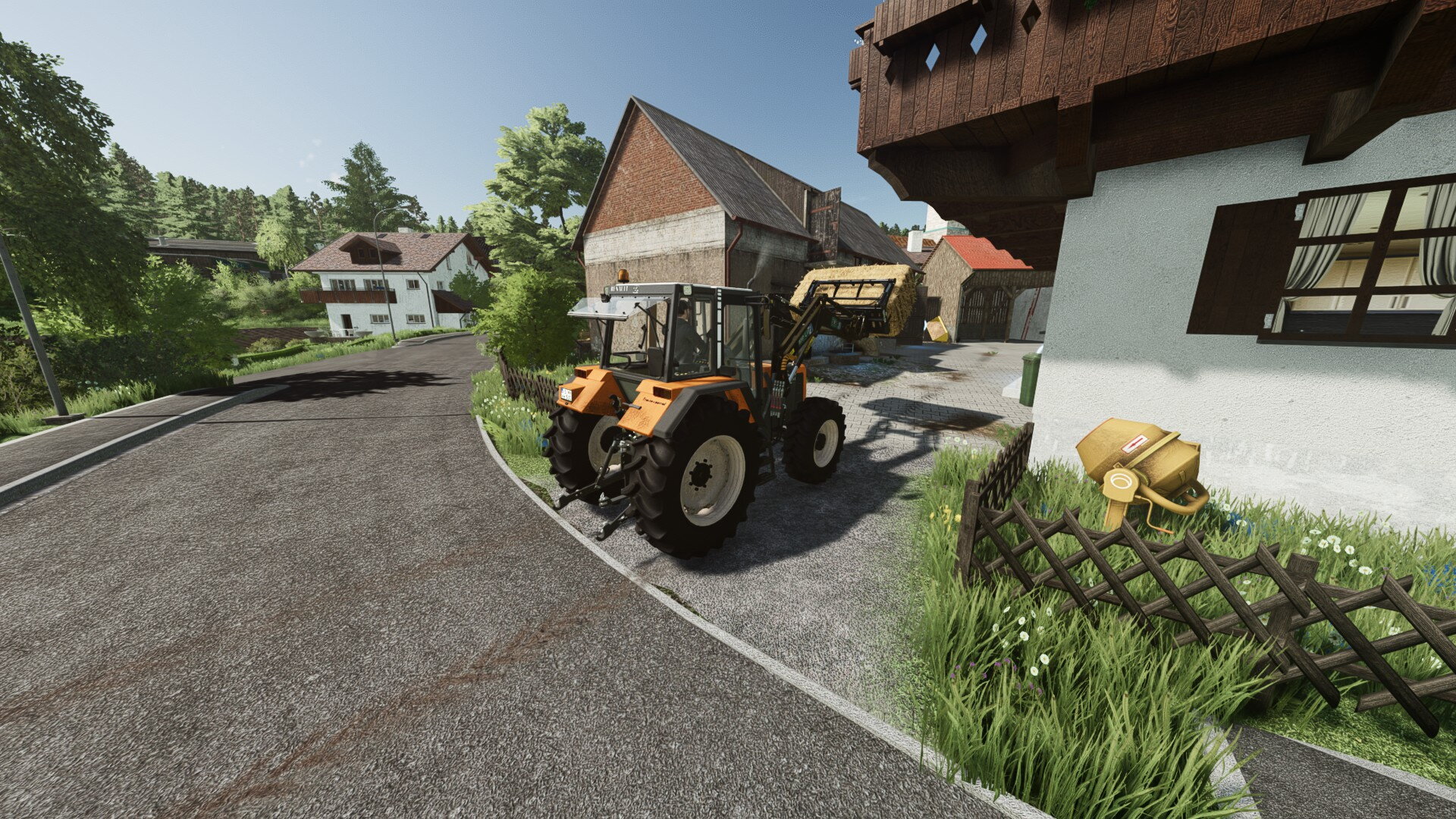 Die letzten Ballen aus dem Außenlager holen.