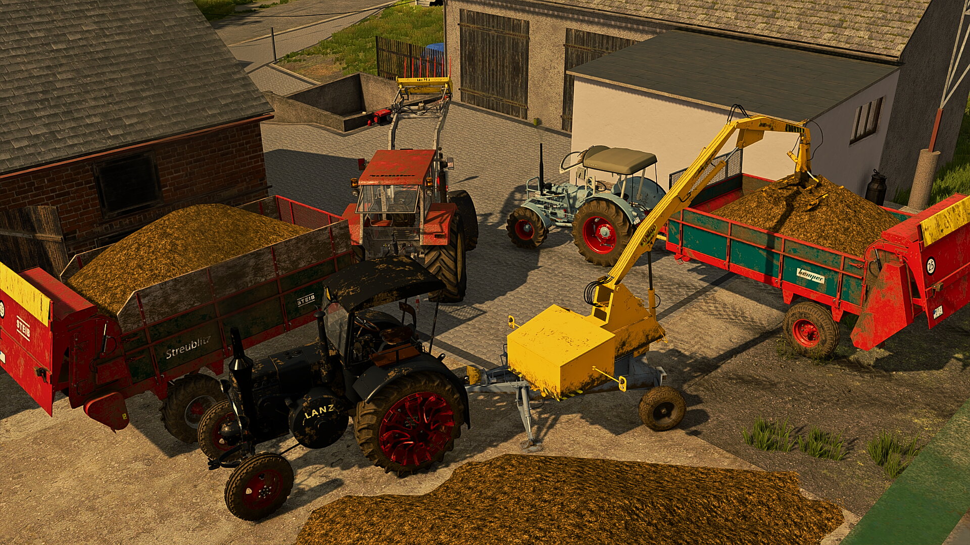 Mit dem Lanz die Miststreuer befüllen