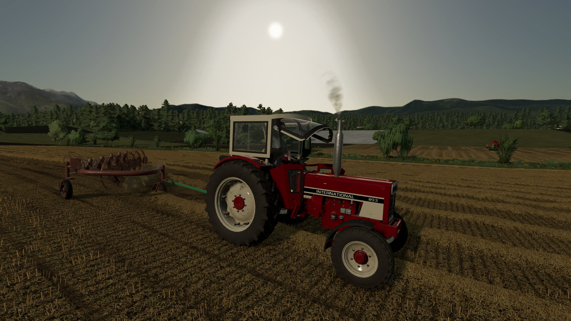 Das Stroh hinterm M66T zusammenschwaden...