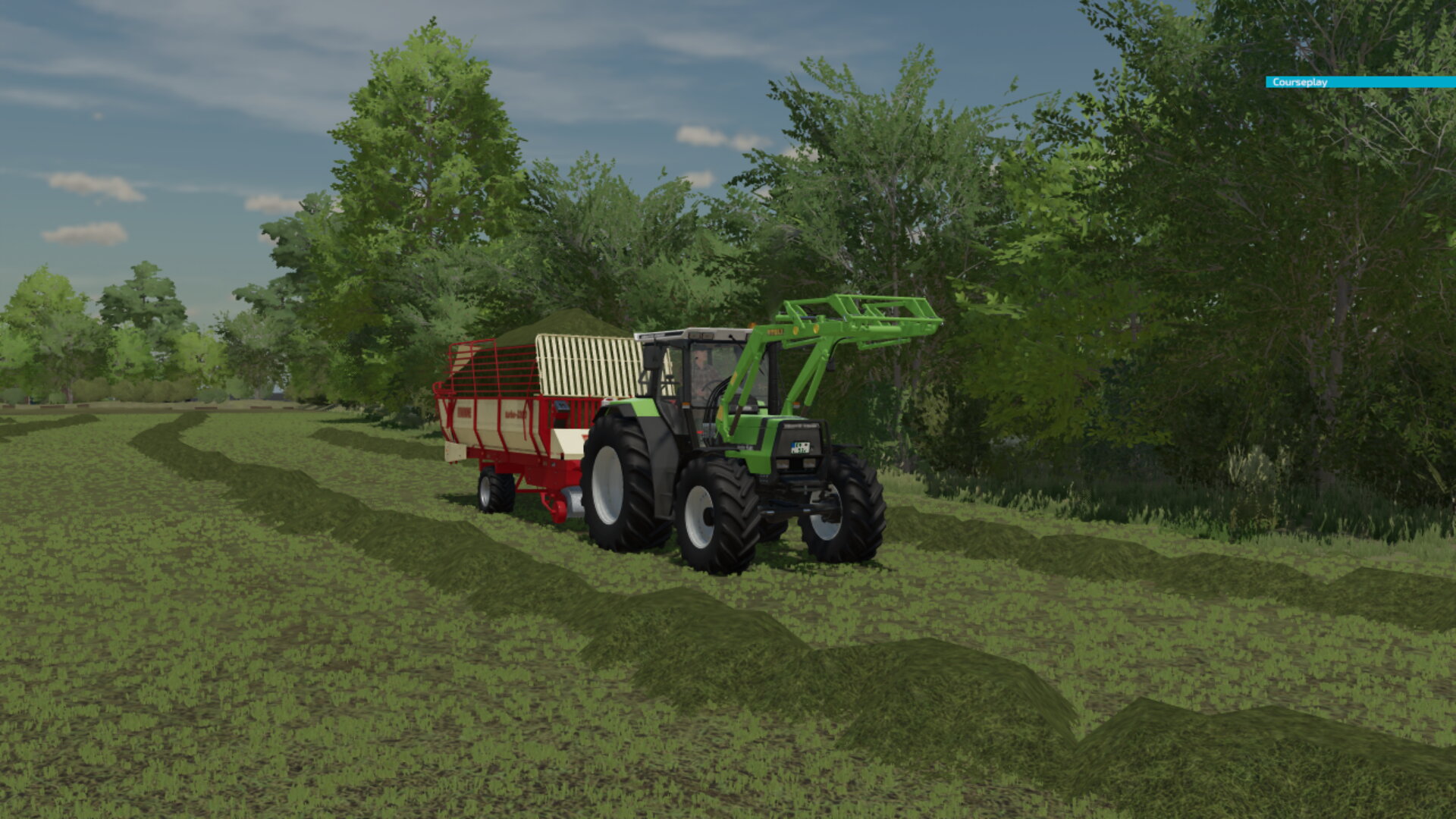Ab ins Gras der Ladewagen wartet