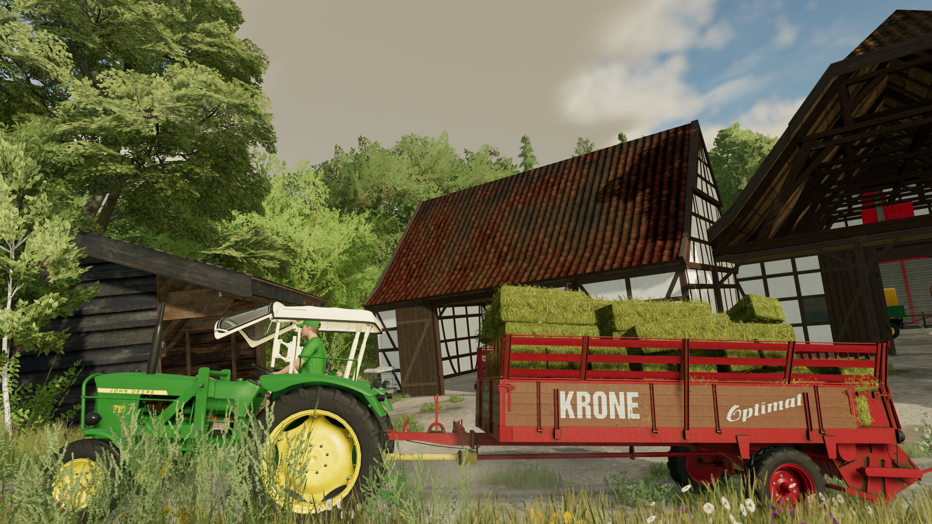 Wer kennt es nicht? Da hat man den ganzen Tag im besten Wetter noch Ballen gepresst, dann kommt ne dunkle Wolke, und plötzlich schmeißt man die Ballen auf alles was noch Räder hat, Hauptsache es geht trocken rein.