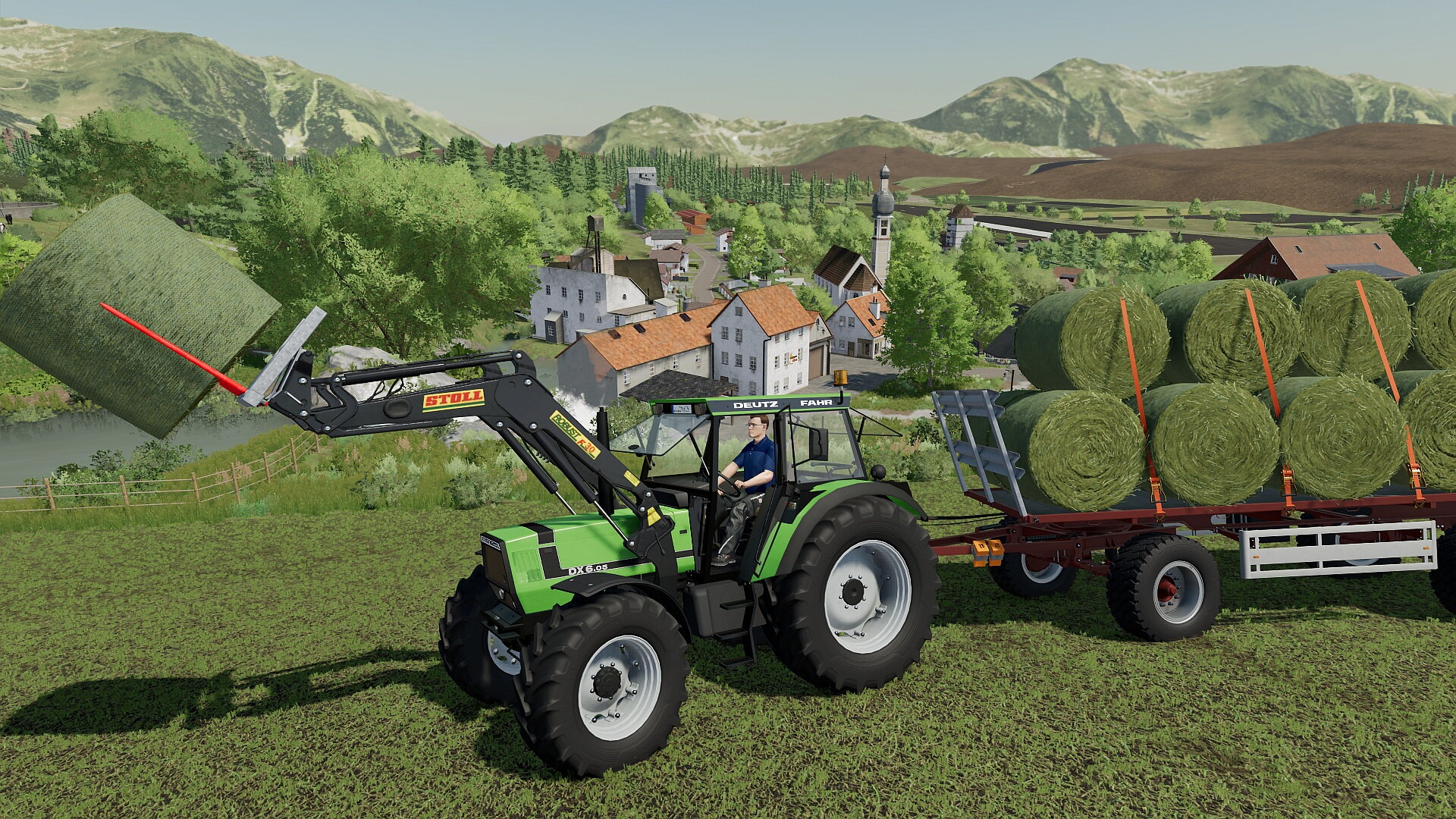 Der gute alte DX 6.05 sammelt am Galgenberg die Heuballen auf.