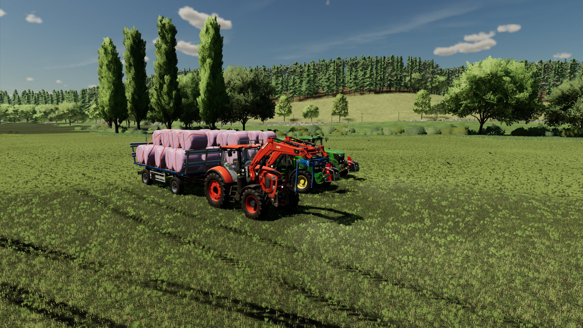 Ballen nach Hause bringen mit den beiden Johnys und dem Kubota-Vorführer..