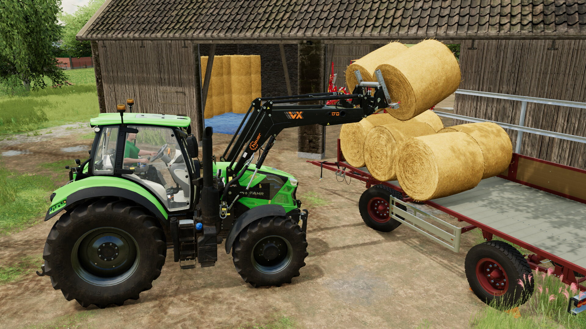 Der Neue lagert die Ballen ein...