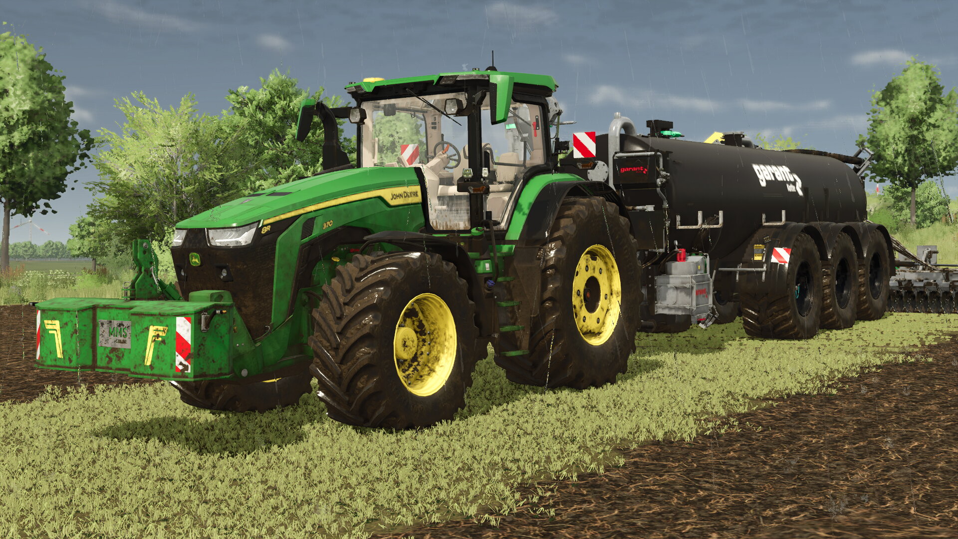 Trotz dem Regen haben wir noch schnell die letzte Maislandfläche umgebrochen. Dies haben wir mit unserem 8R 370 und Kotte PTR samt Samson Scheibenegge getan.