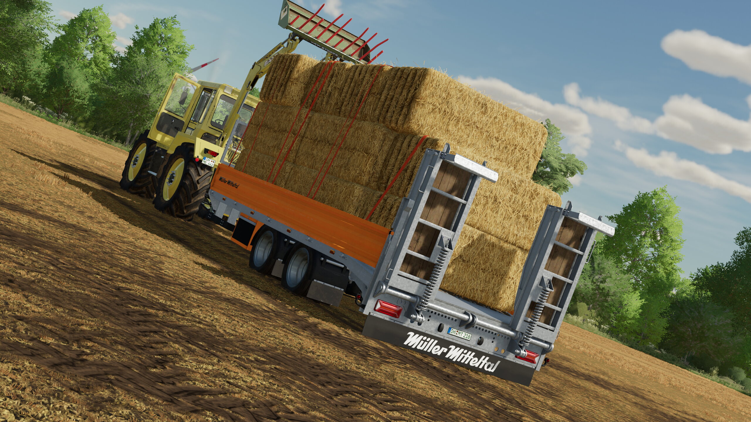 MB Trac 1300 Müller Mitteltal Tadem Tieflader Baas Hecklader Baas Mistgabel