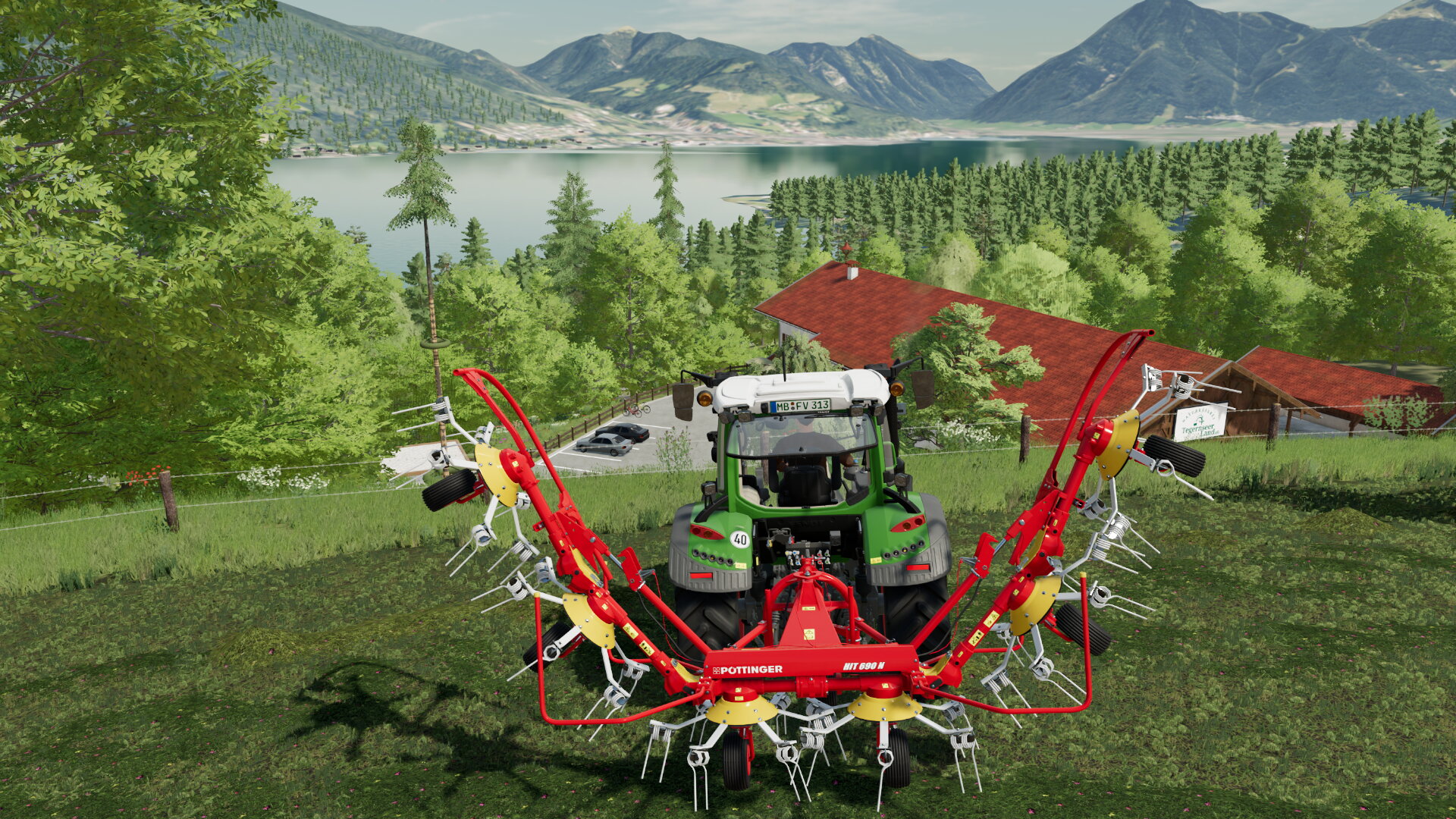 Als Ersatz für den verunfallten Lindner probieren wir gerade einen Fendt 313 S4. Beim ersten Einsatz oberhalb des Tegernsees sieht es kurz so aus, als wolle er eine Runde über den See fliegen. Und wenn ich das Preisschild sehe, fliege ich am liebsten gleich mit.