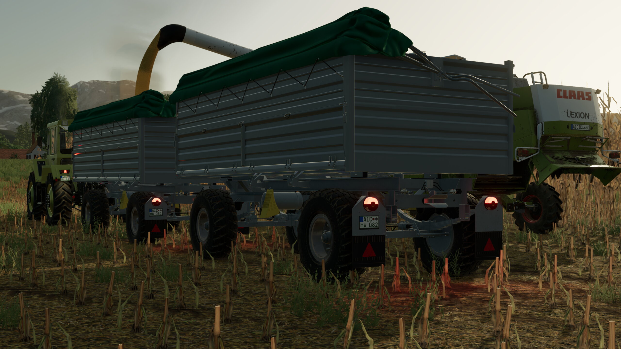 Heute ist der Mais dran da darf der Claas Lexion 450 Evolution und Claas Corio zeigen ob er sein Geld wert war dabei waren ein MB Trac 1500 mit 2 HW 80 im Schlepptau