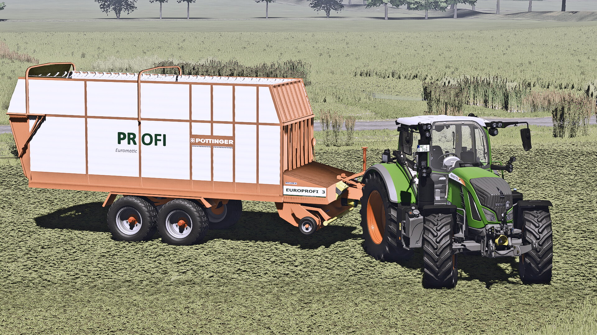 Der Ladewagen wirkt bisschen groß, ist aber mittlerweiler behoben. Fendt 718 Vario S4Map: Schwesing Bahnhof