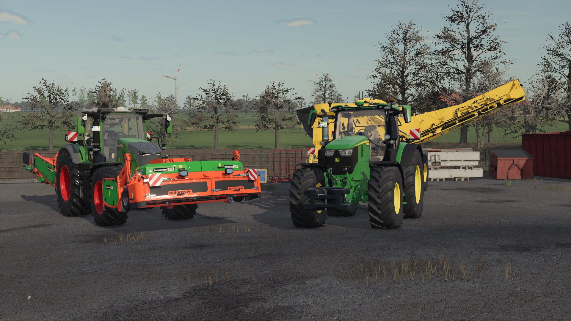 Heute haben wir mit unserem Nachbarn unsere Technik für den Zwiebelanbau sowie die Ernte dieser entgegen genommen. Hiermit wollen wir in den Anbau von Zwiebeln starten. Hier im Bild ist der 832 mit Krautmulcher und Schwadleger unseres Nachbarn sowie unser 6R 250 mit Ropa Keiler 2 mit Non-Stop-Bunker