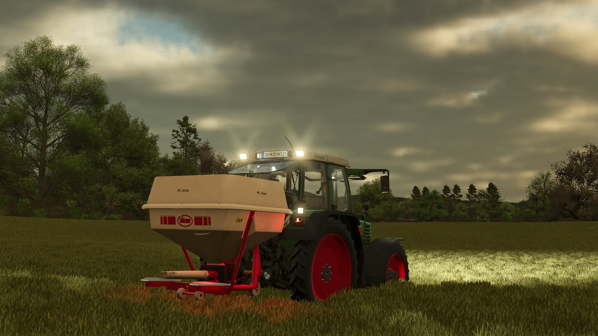 Düngerstreuen am Abend