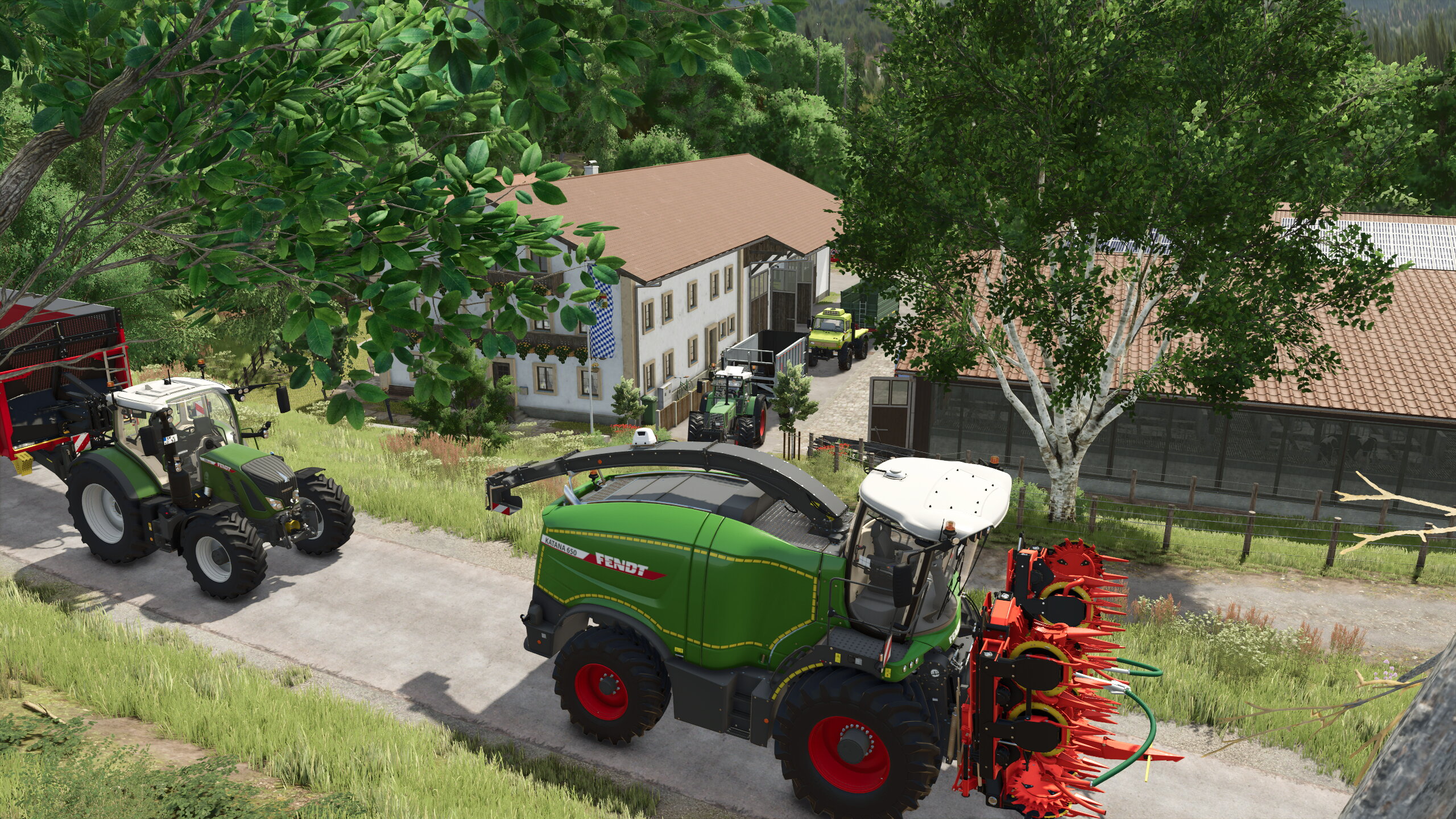 Im Einsatz unser 824er Fendt sowie der 2100er Unimog, das Lohnunternehmen stelle den Häcksler sowie ein weiteres Abfahrgespann durch einen 722er Fendt.