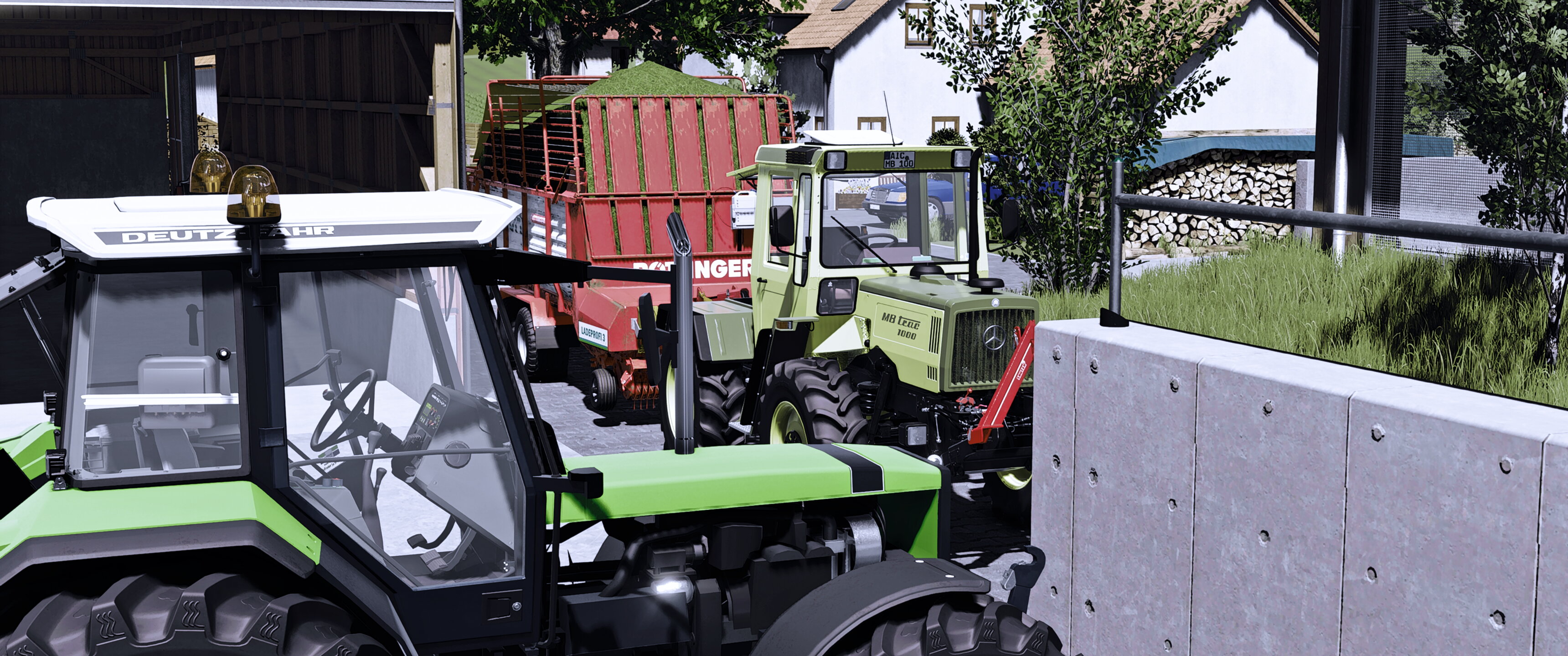 DeutzFahr AgroStar 6.31, MBtrac 1000 Bj. 1988 (Mercedes-Benz W124 - 250D (im Hintergrund))Map: Ellerbach