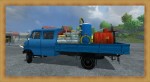 Doppelkabine-Pritschenwagen mit Saatgut, Duenger, Diesel und Kaercher
