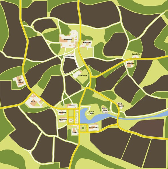 Auf der schön gestalteten Landschaft habt ihr viel zu tun, neben den großzügigen angelegten Feldern.