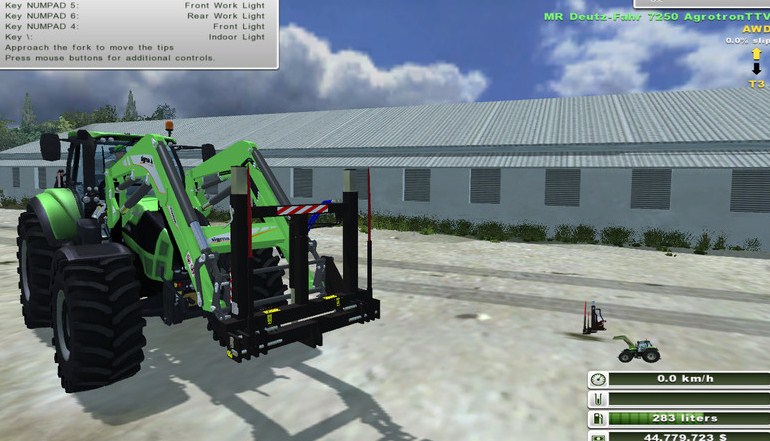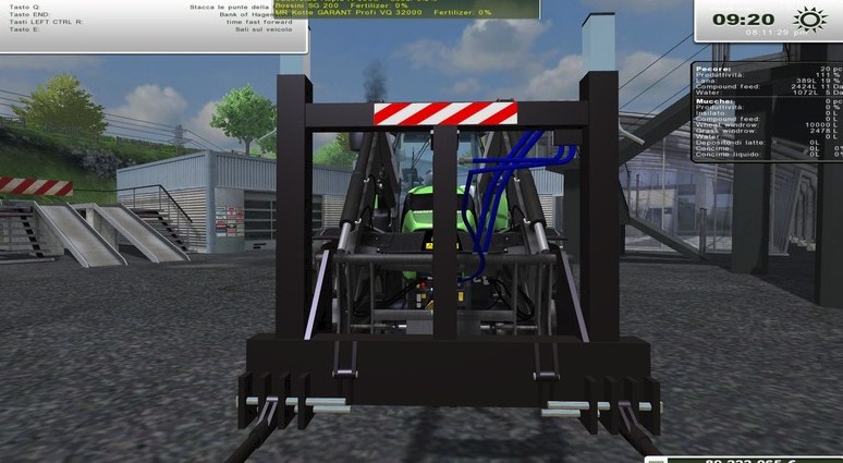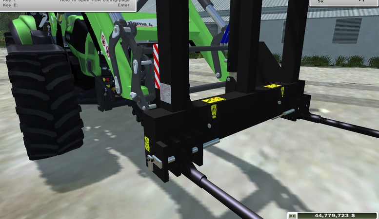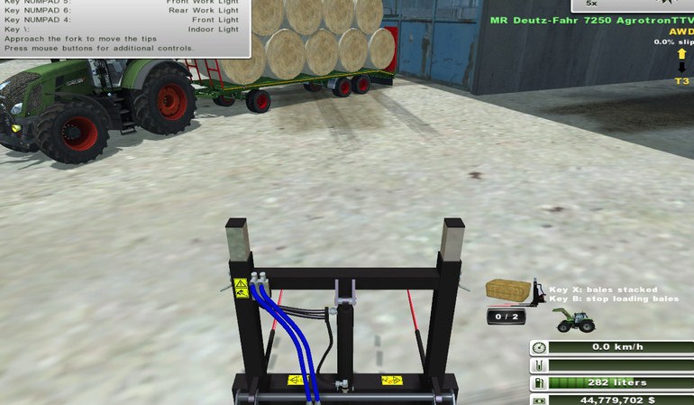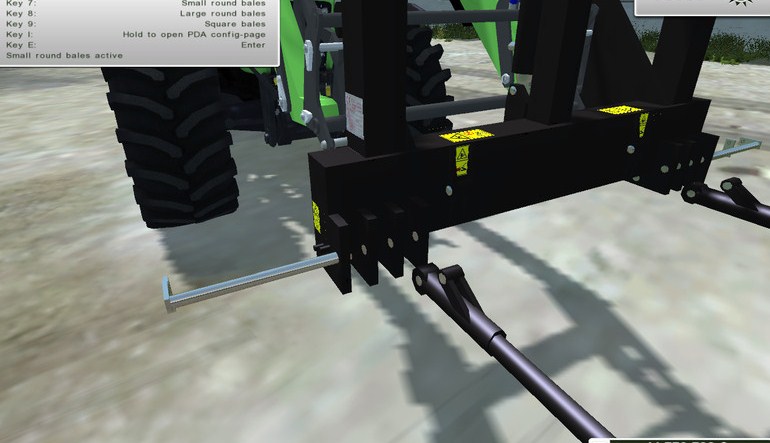 - Automatic Bale Attacher: Attach the Bales Automatically with the input Key B, once Activated, it will be Possible to choose with the input Key X, the Default Load Based on the Number and Type of Bales you want to Attach, the Fork Hydraulic must be very close to the Bale so that it Detects the presence, Dettach the Bales with the input Key Z