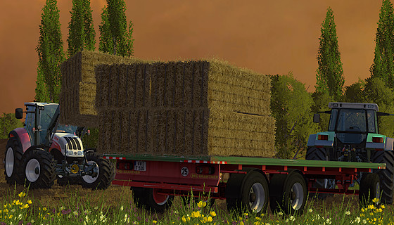 Die Länge der Plattform wuchs so um 2 Meter von 6m auf 8m. Durch die niedrige Bauweise ist eine maximale Ladekapazität und Wirtschaftlichkeit garantiert. Das Beladen von gestapelten Rundballen sowie Quaderballen stellt so kein Problem dar.