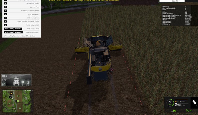 - Mähdrescher mit über 80% Ladung werden jetzt in Gelb angezeigt,
