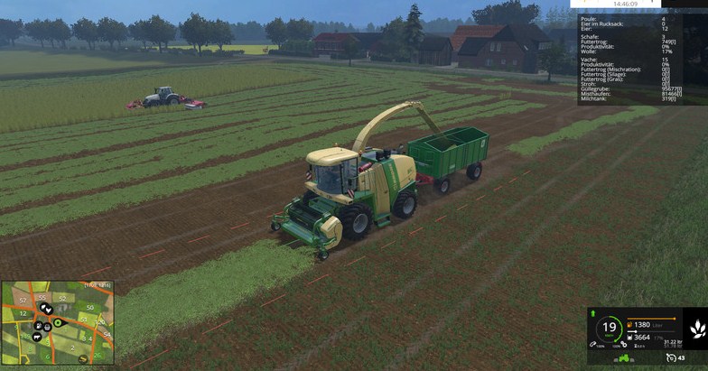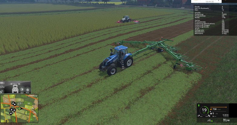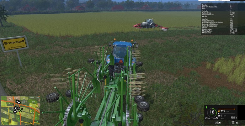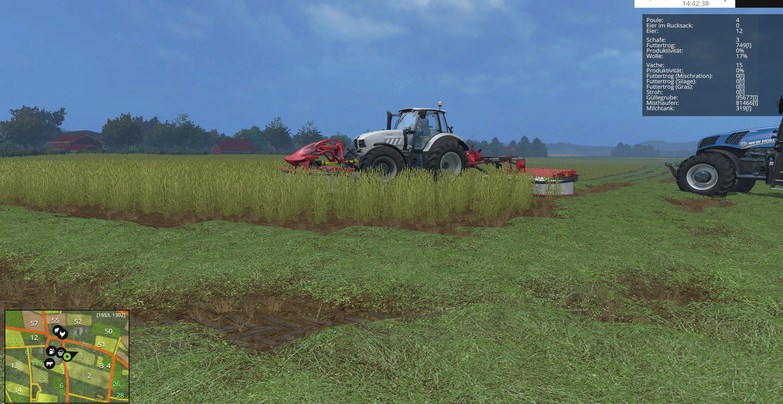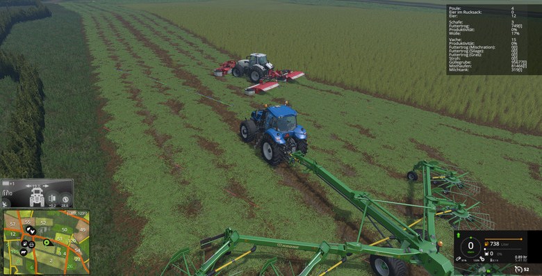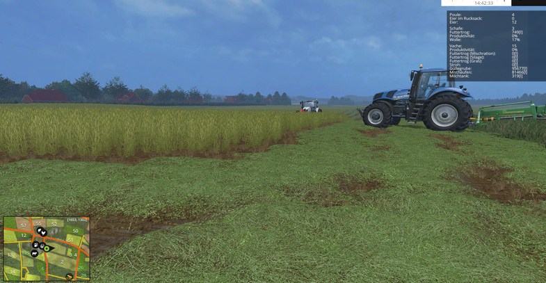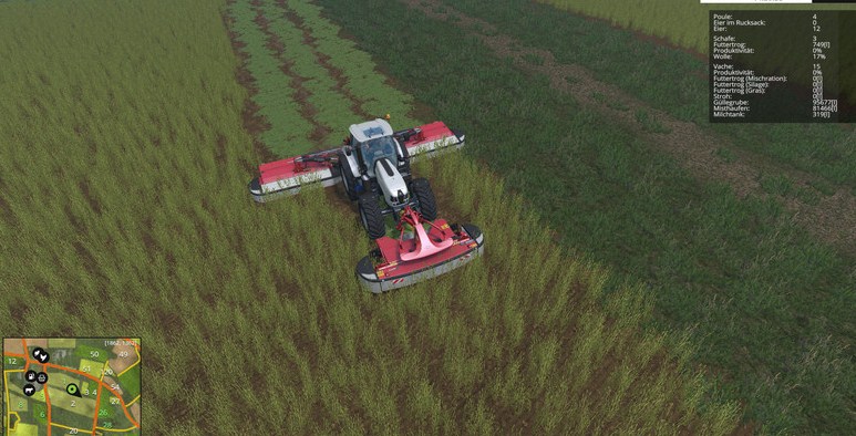 Mäht man jetzt eine mit organischem Dünger versorgte Wiese erhöht sich der Ertrag beim Mähen und der Dünger wird entfernt. Die Gülle/Mist Texturen übernehmen praktisch die Funktion des Spray-Layers auf Feldern. Das heißt auch, dass für jeden Wachstumszyklus die Schiete neu auf die Wiese muss.