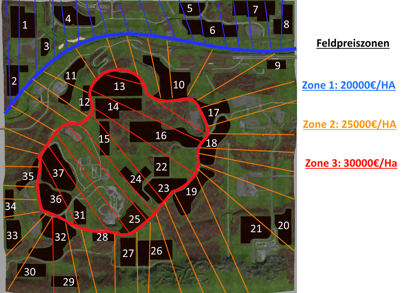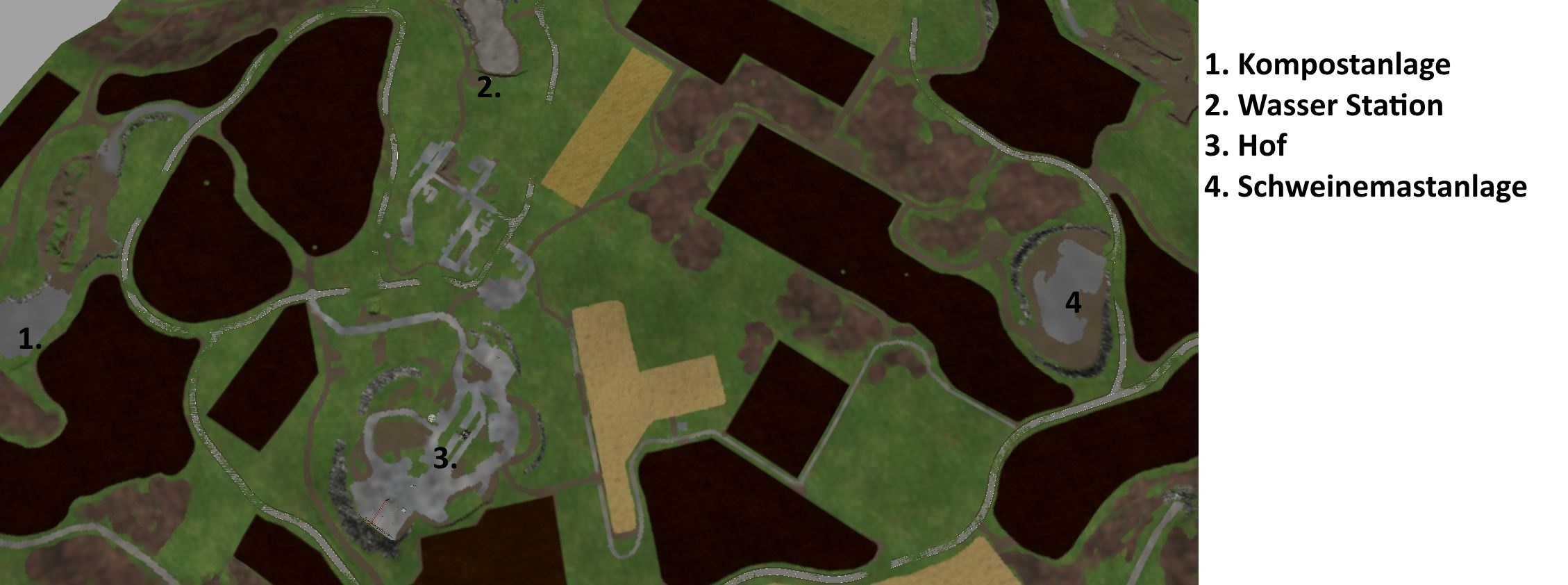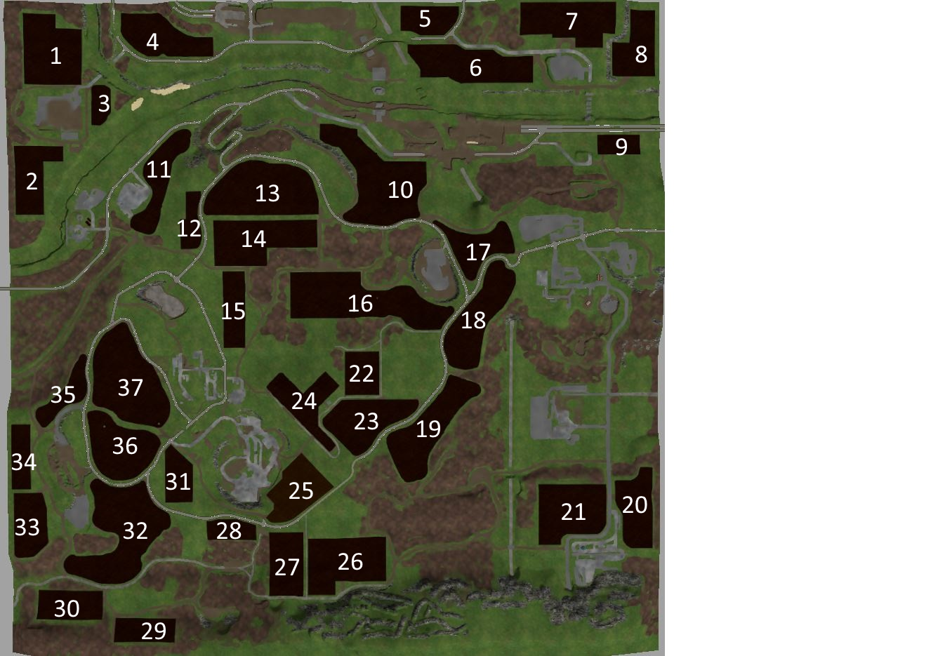 # Feld 13 und 24 nachgearbeitet, andere Felder Funktionieren bei mir#Klee und Luzerne eingebaut(Als schnellwachsende Zwischenfrucht)-Texturen: Klee Luzerne V 1.0 #Zusätliche Brücke übern Fluss (Abkürzung zur BGA)#Unkraut eingebaut (DANKE UPSIDEDOWN!!! für die freigabe!!!)#Texturen Ausgetauscht: -Forgotten Plants Rape V 1.0-Forgotten Plants Maize V 1.0-Forgotten Plants Wheat Barley V 1.1Neue SchwadenTexturen: -Windrow Textures V 1.0 #Einige schwebende Objekte bearbeitet#Kalk Lager Abladestation Überarbeitet