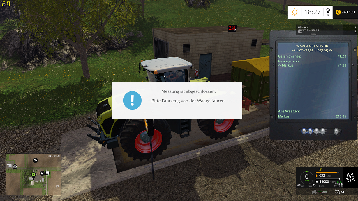 Wichtig dabei ist nur zu beachten, mit dem Schlepper immer bis zum ende der Waage zu fahren.