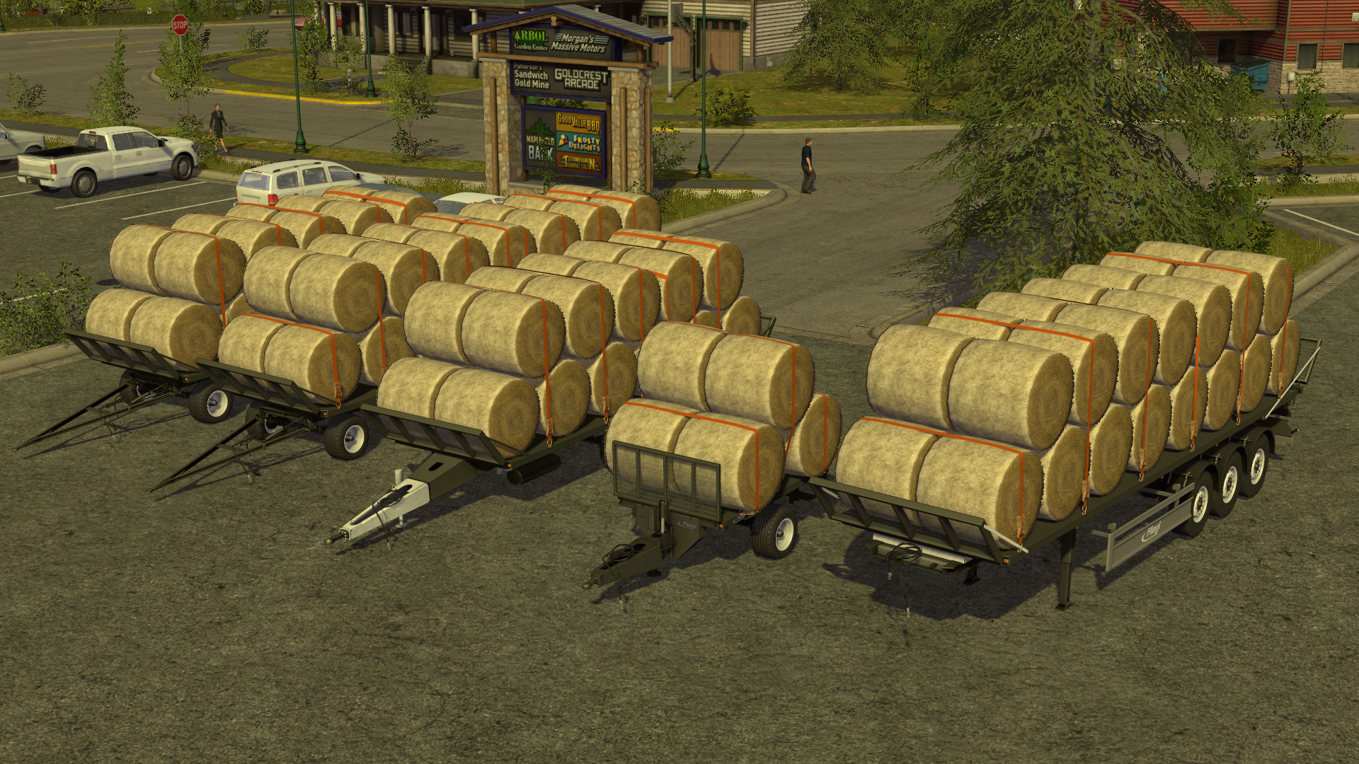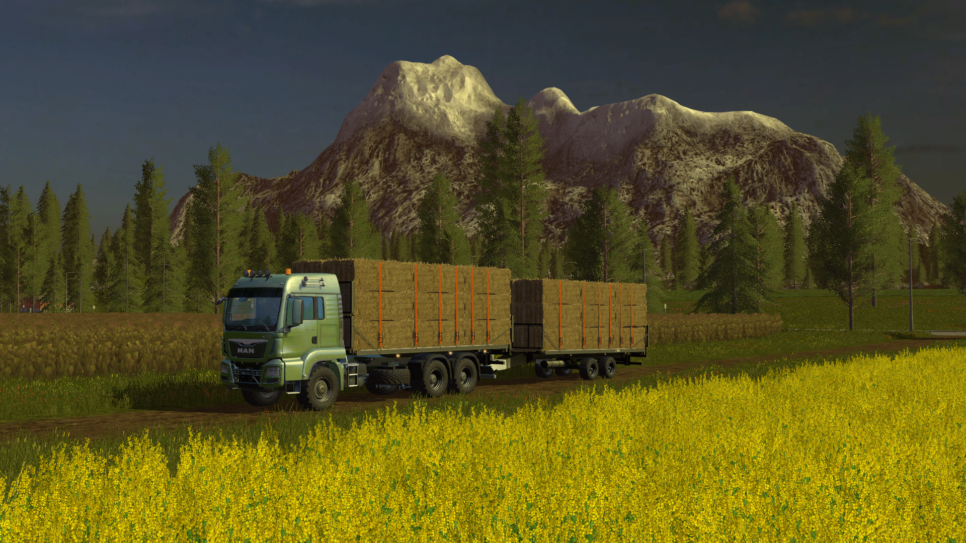 - man kann theoretisch auch mit Forstaufbau und UAL Güter laden; von solchen Kombinationen ist aber abzuraten. Gleiches gilt für Rundballen-/gerader Aufbau mit WoodAutoLoad