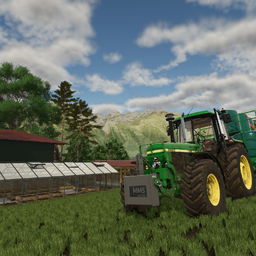 In ihr könnt ihr kleine bis mittlere Maschienen unterstellen (ja, ein John Deere 6R passt da wirklich grad so rein) und eure Ballen auf dem Heuboden lagern.