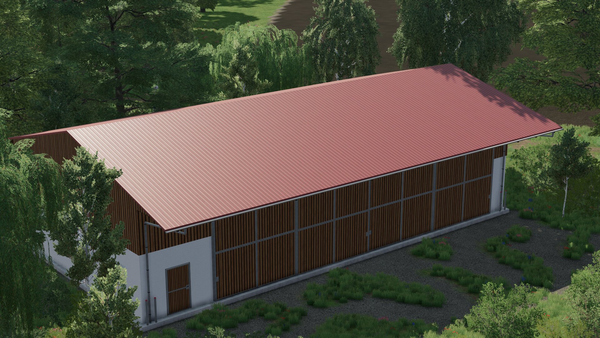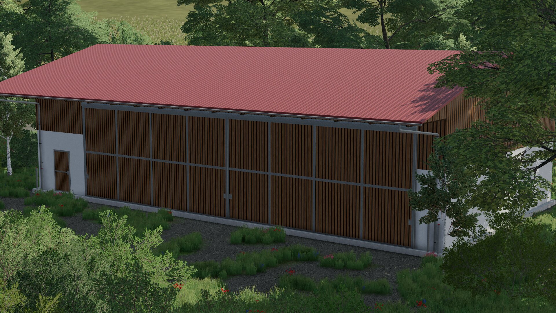 Dies ist eine Halle, die es im Landwirtschafts Simulator 2019 schon gab. Sie verfügt über 4 Rolltore und 1 Tür auf der Vorderseite, sowie 1 Türe auf der Rückseite.