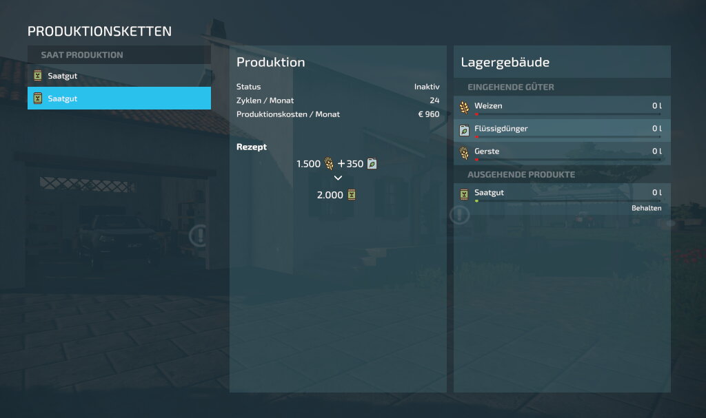 Die Mod beinhaltet eine Saatgutproduktion die aus Weizen und Gerste Saatgut herstellt.