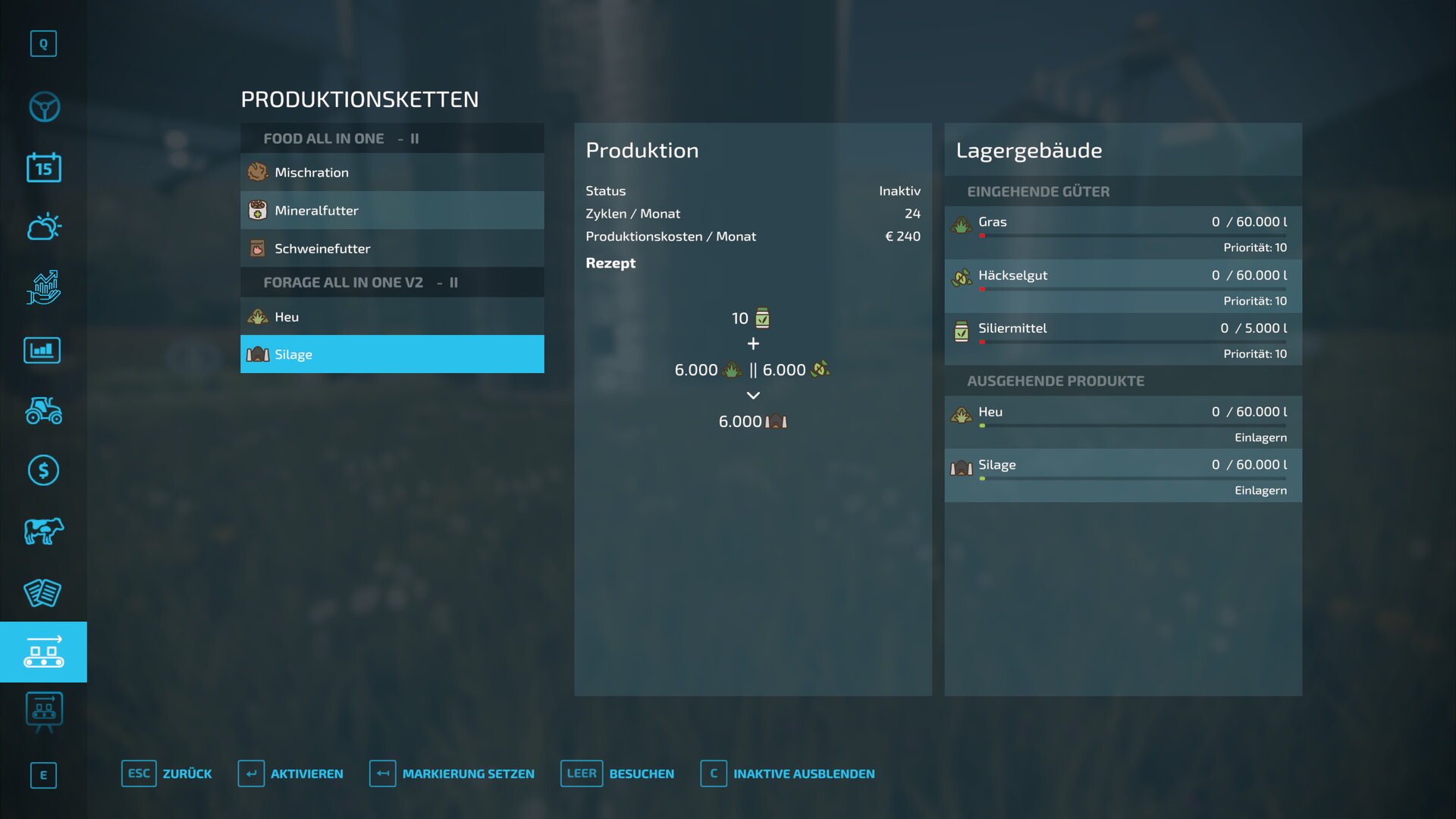 Rohstoffe: Gras, Häckselgut, Siliermittel.