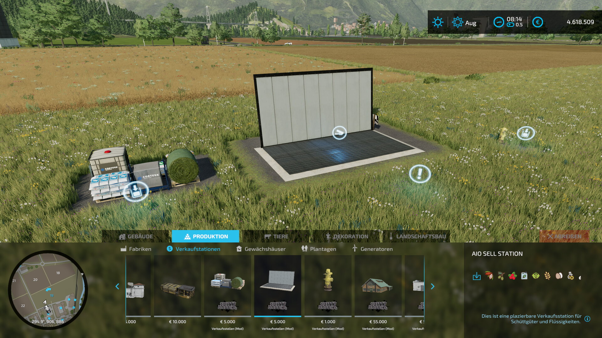 Dies ist eine plazierbare Kauf- Verkaufsstation für Schüttgüter und Flüssigkeiten.